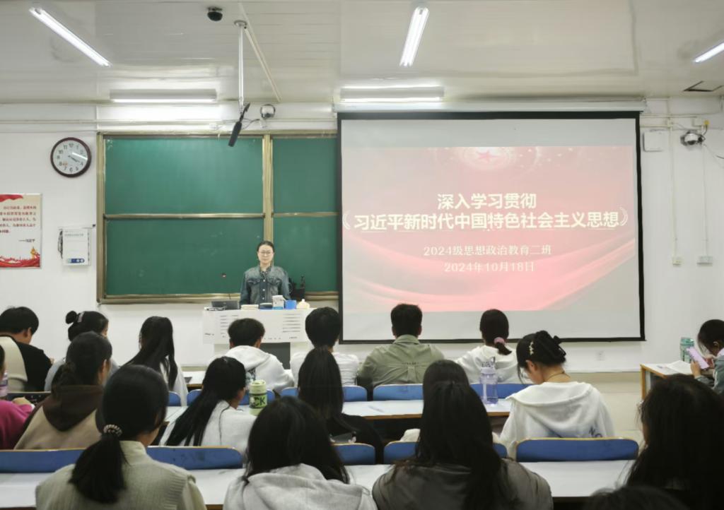 为深入学习贯彻习近平新时代中国特色社会主义思想,切实激发青年的使命感与责任感,10月18日下午,XCSport 2024 级思想政治教育二班 于社科楼514教室举办了 “深入学习新思想,青春奋进新时代” 主题团课活动。此次团课由团支书王志颖主持,二班全体同学共同参与。