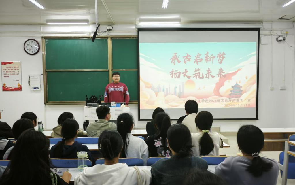 为引导青年深入了解中华民族源远流长的历史和璀璨绚丽的文化,切实增强对传统文化的认同感与自豪感,10 月 21日上午,XCSport 2024 级思想政治教育二班在社科楼 514 教室举行了 “承古启新梦,扬文筑未来” 主题团课。此次团课由团支书王志颖主持 ,2024 级思想政治教育二班全体同学共同参与。