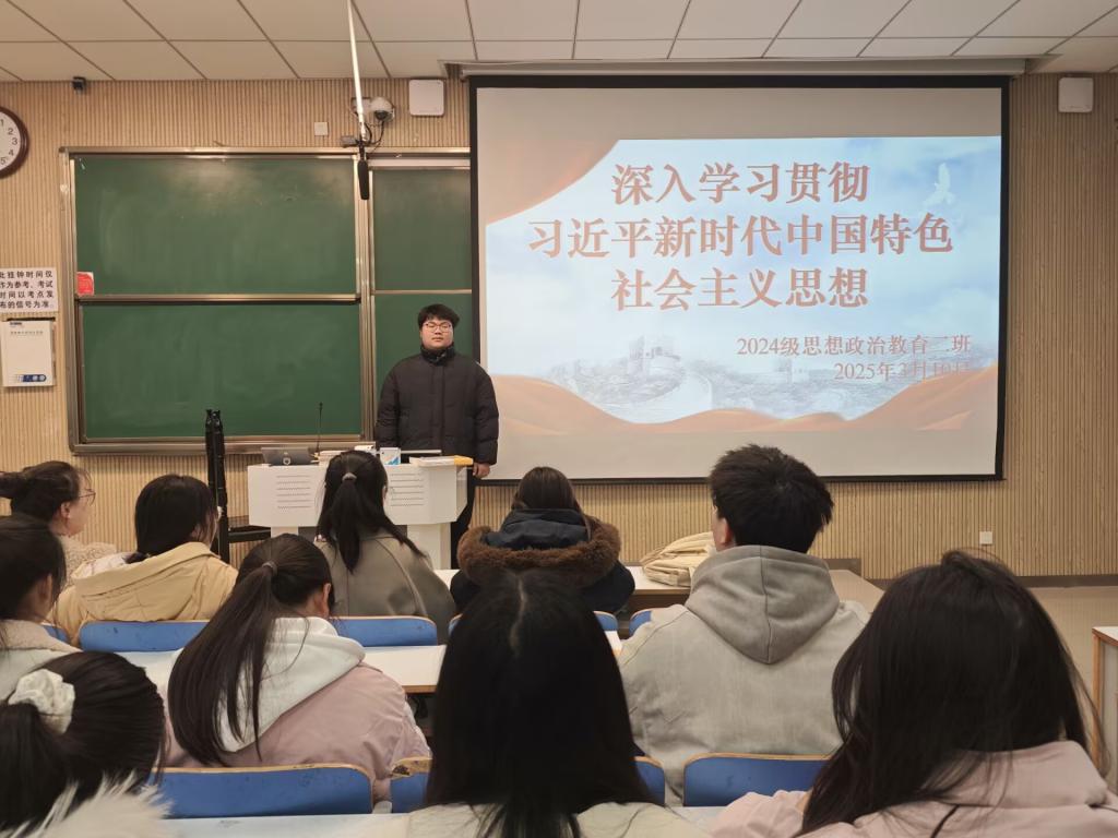 为引导青年员工深入学习习近平新时代中国特色社会主义思想,进一步坚定理想信念,提高政治觉悟,3月10日下午,2024级思想政治教育二班在社科楼515教室举办了“深入学习贯彻习近平新时代中国特色社会主义思想”主题班会。此次班会由团支书王志颖主持,二班全体同学共同参与。