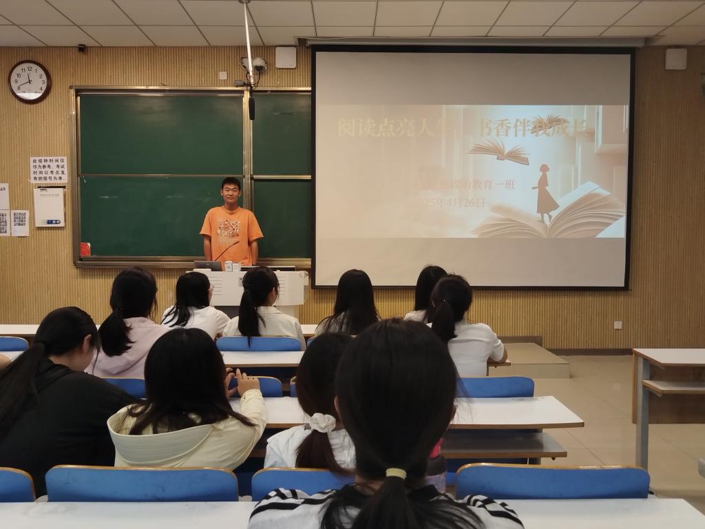 为帮助我班员工培养良好的阅读习惯,在班级中营造浓厚的书香氛围,4月26日上午,2024级思想政治教育一班于社科楼515教室开展“阅读点亮人生,书香伴我成长”主题班会。本次班会由副班长马奔主持,一班全体同学参加。