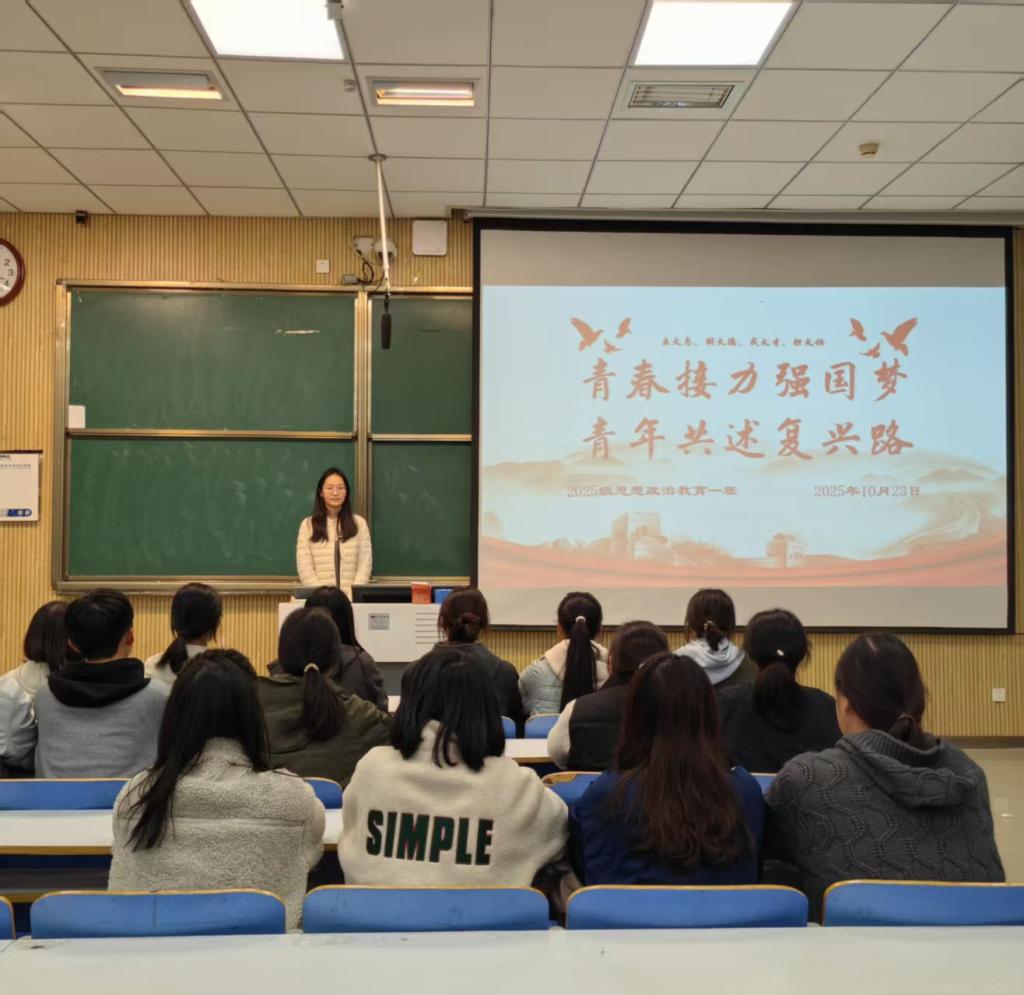 为引导青年员工将个人理想融入国家发展大局,凝聚青春奋进力量,10月23日下午,2025级思想政治教育一班于社科楼515教室开展“青春接力强国梦,青年共述复兴路”主题团课。本次团课由团支书宋晓然主持,班级全体同学参加。