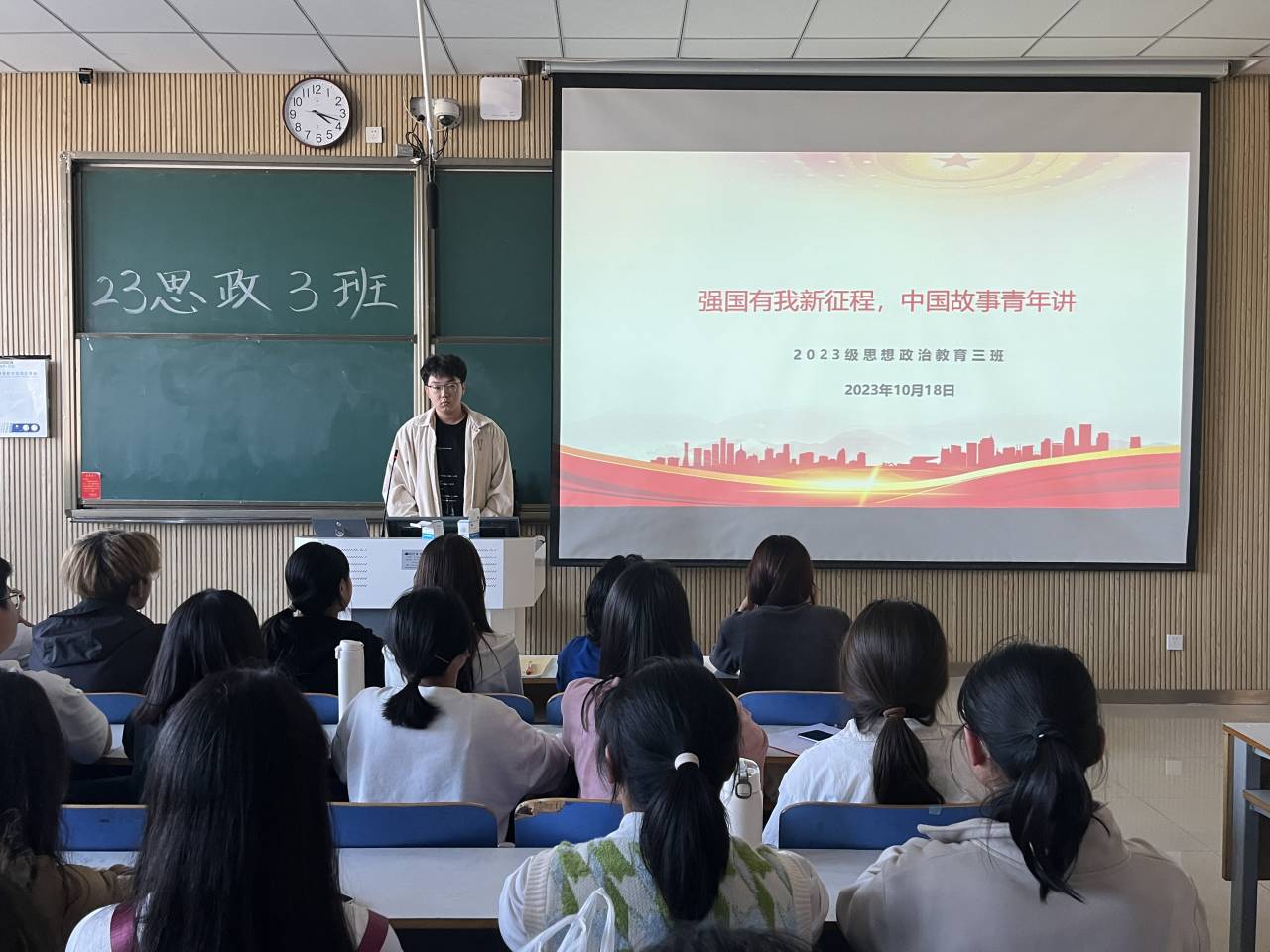 10月18日上午,2023级思想政治教育三班在社科楼514教室召开“强国有我新征程,中国故事青年讲”主题团课。公司2023级思想政治教育三班全体成员共同参加此次团课,团课由团支书郝瀚主持。