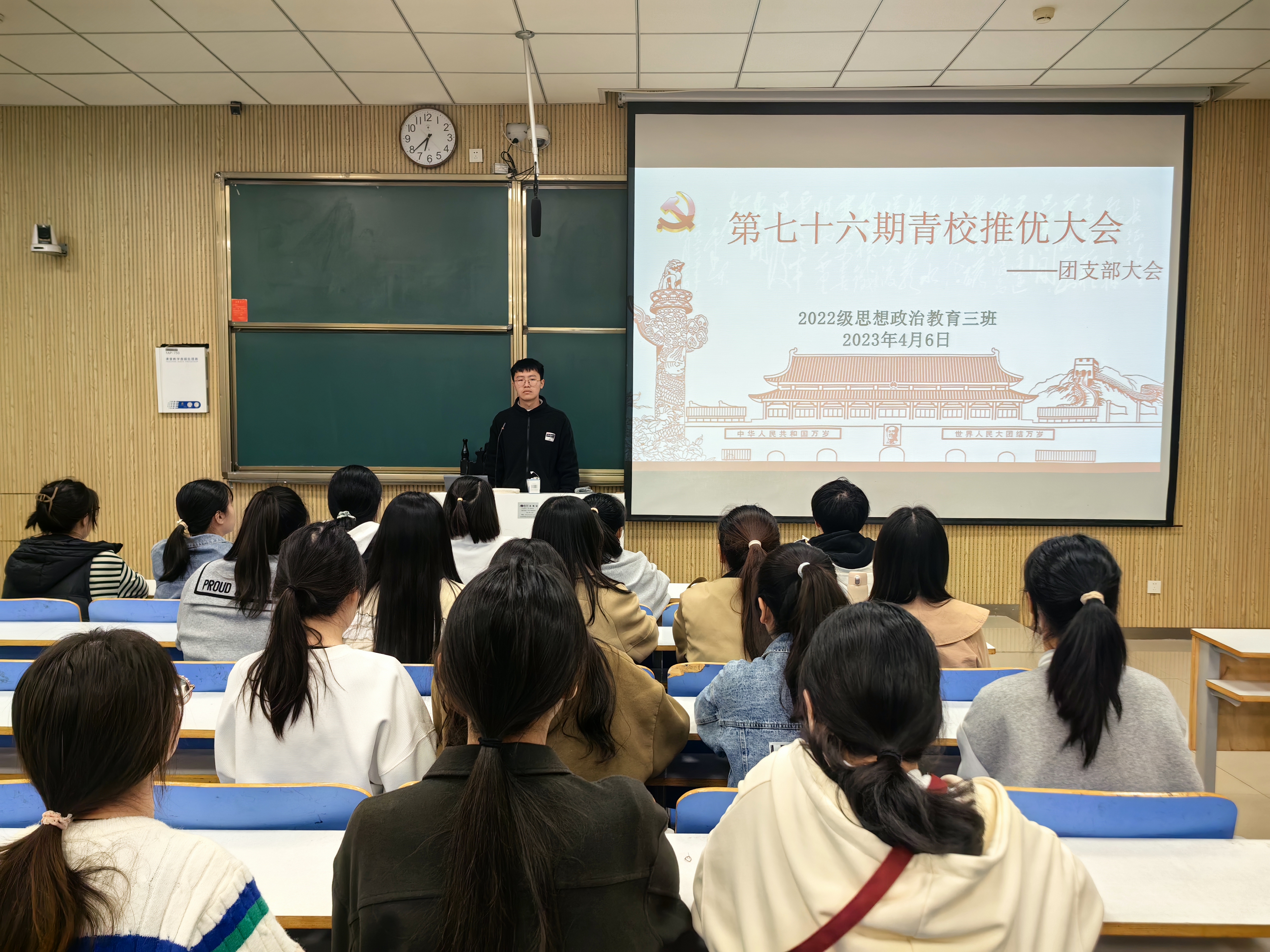 4月6日下午,2022级思想政治教育三班在社科楼515教室召开青校推优大会。公司2022级思想政治教育三班班主任吴梦云以及三班全体同学共同参与此次大会。大会由团支书余浩洋主持。