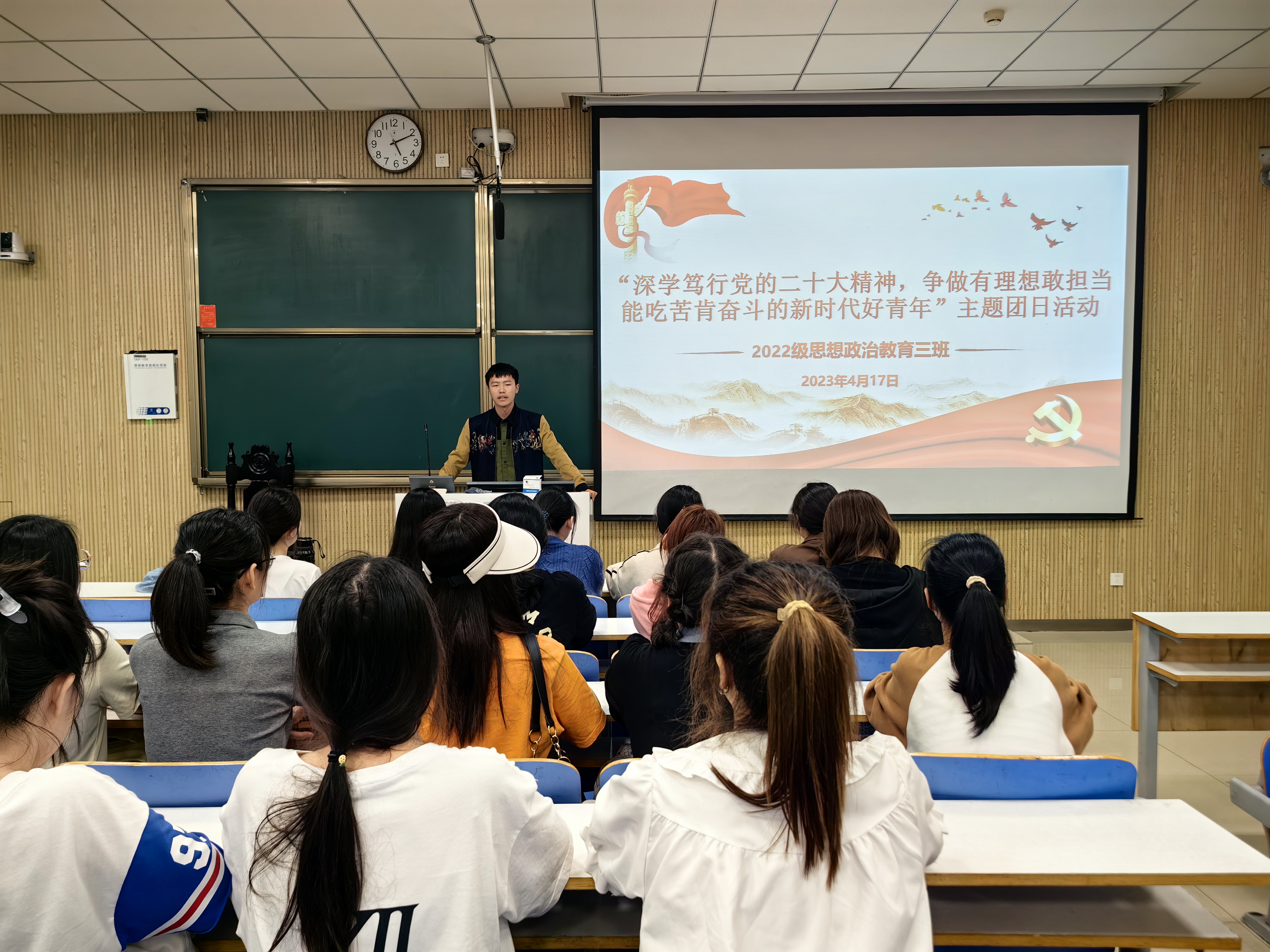 4月17日下午,2022级思想政治教育三班在社科楼515教室召开“深学笃行二十大,争做时代新青年”主题团课。公司2022级思想政治教育三班全体成员共同参加此次团课。团课由团支书余浩洋主持。