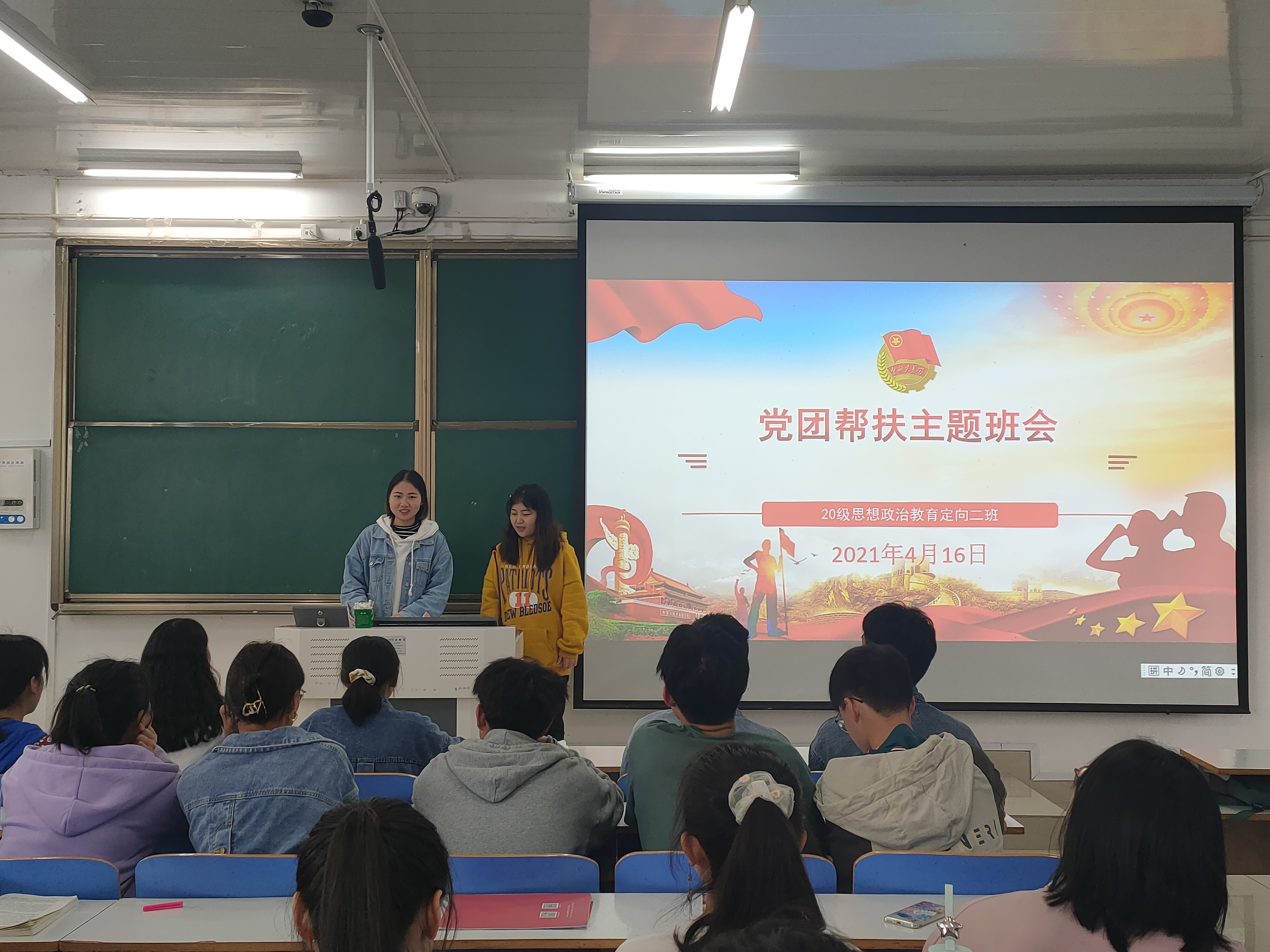 4月16日上午,2020级思想政治教育定向二班在社科楼514教室顺利召开党团帮扶主题班会。2018级预备党员温玉婉、葛梦想与定向二班全体同学共同参与本次班会。班会由团支书李晨曦主持。