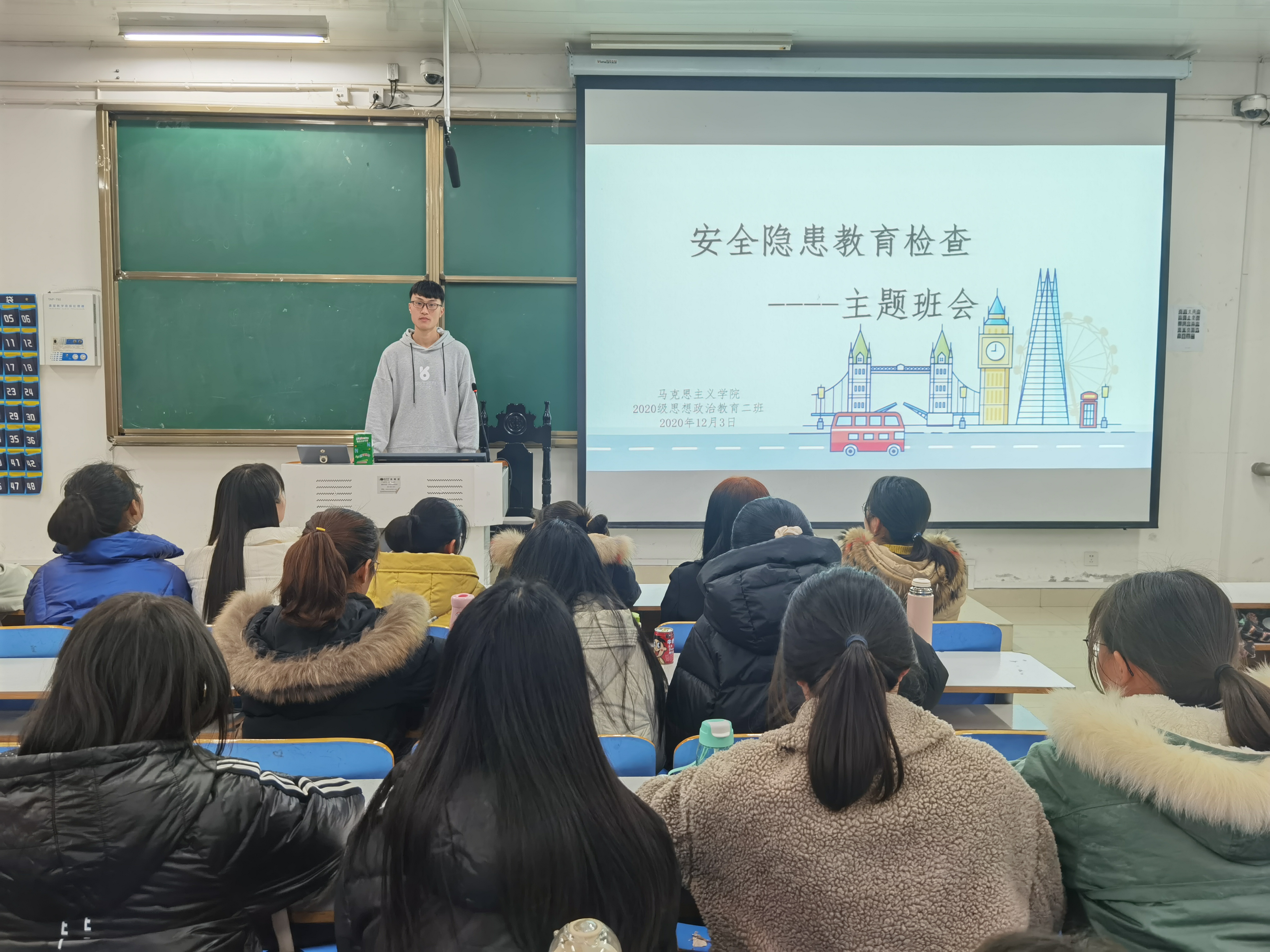 12月3日下午,2020级思想政治教育二班在社科楼516教室召开“安全隐患教育检查”主题班会。2020级思想政治教育二班全体员工共同参与本次班会。班会由陈宇航主持。