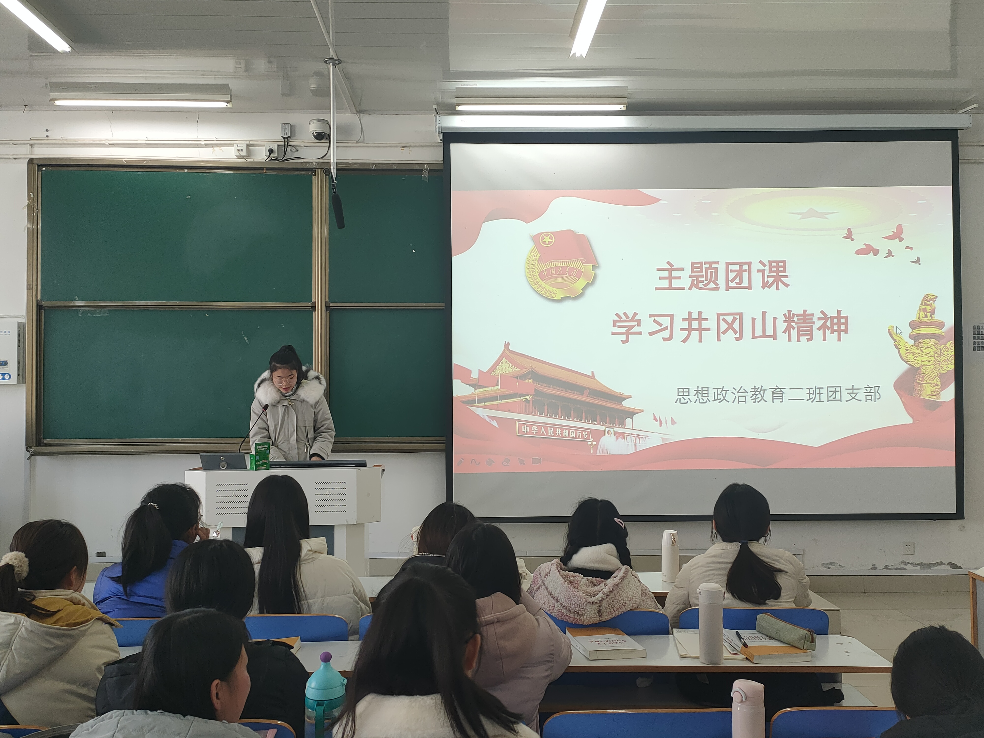 12月24日,2020级思想政治教育二班、定向二班在社科楼516教室顺利开展学习井冈山精神主题团课活动。团课由团支书李晨曦主持。