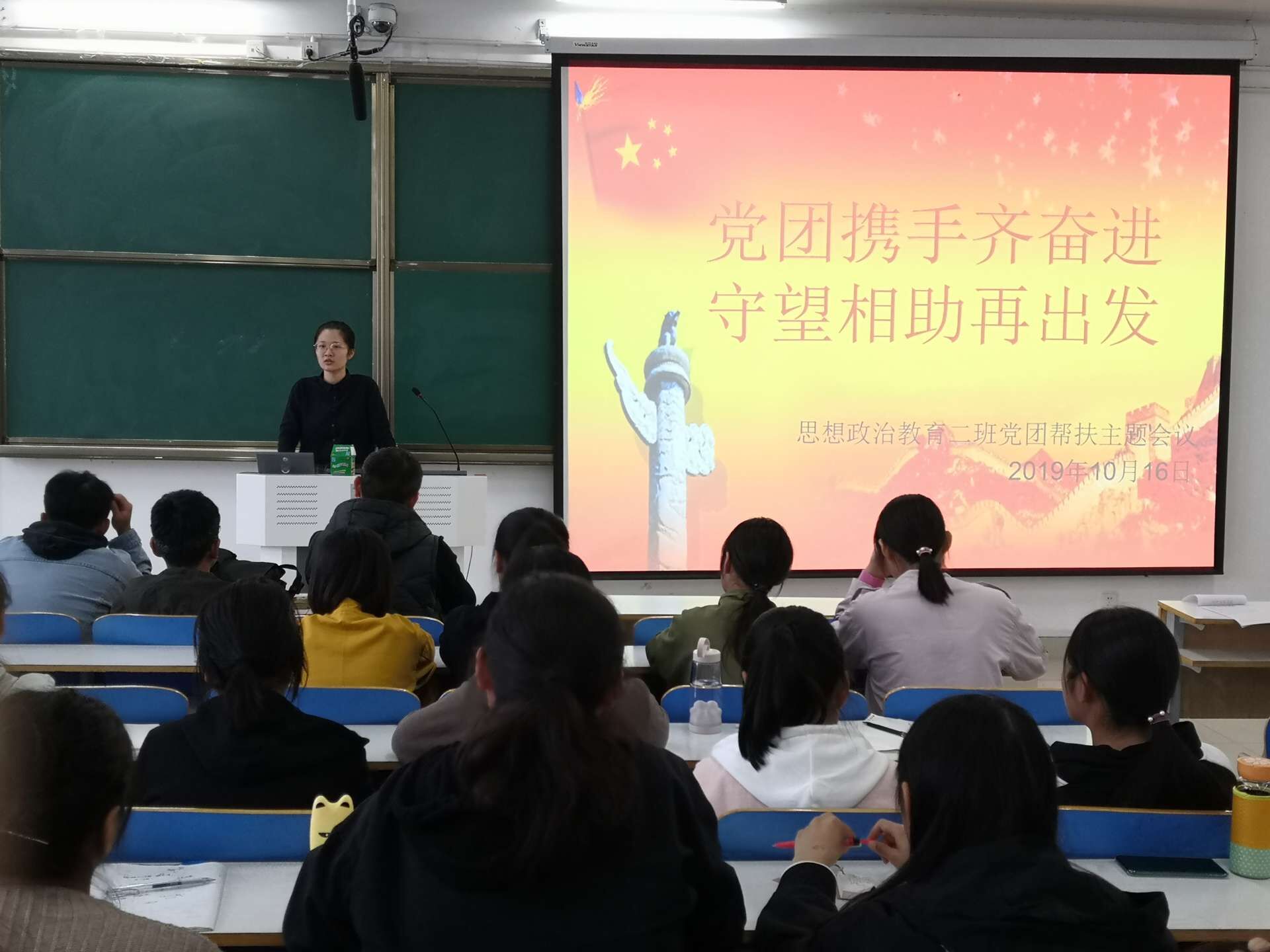 为提高2019级新生适应大公司园生活的能力,10月16日上午,2019级思想政治教育二班在社科楼514教室顺利开展党团帮扶班会。党团帮扶小组成员张雅琼、刘冰以及2019级思想政治教育二班全体同学共同参会。本次班会由团支书孙雅娴主持。