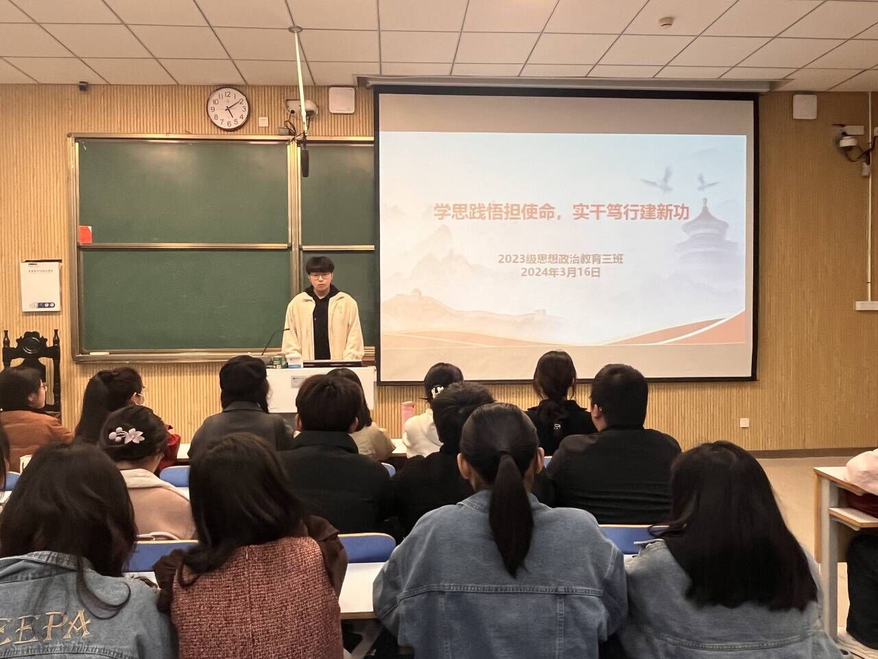为深入学习贯彻习近平新时代中国特色社会主义思想,3月16日上午,XCSport2023级思想政治教育三班在社科楼515教室召开“学思践悟担使命,实干笃行建新功”主题团课。公司2023级思想政治教育三班全体同学共同参与本次班会,班会由团支书郝瀚主持。