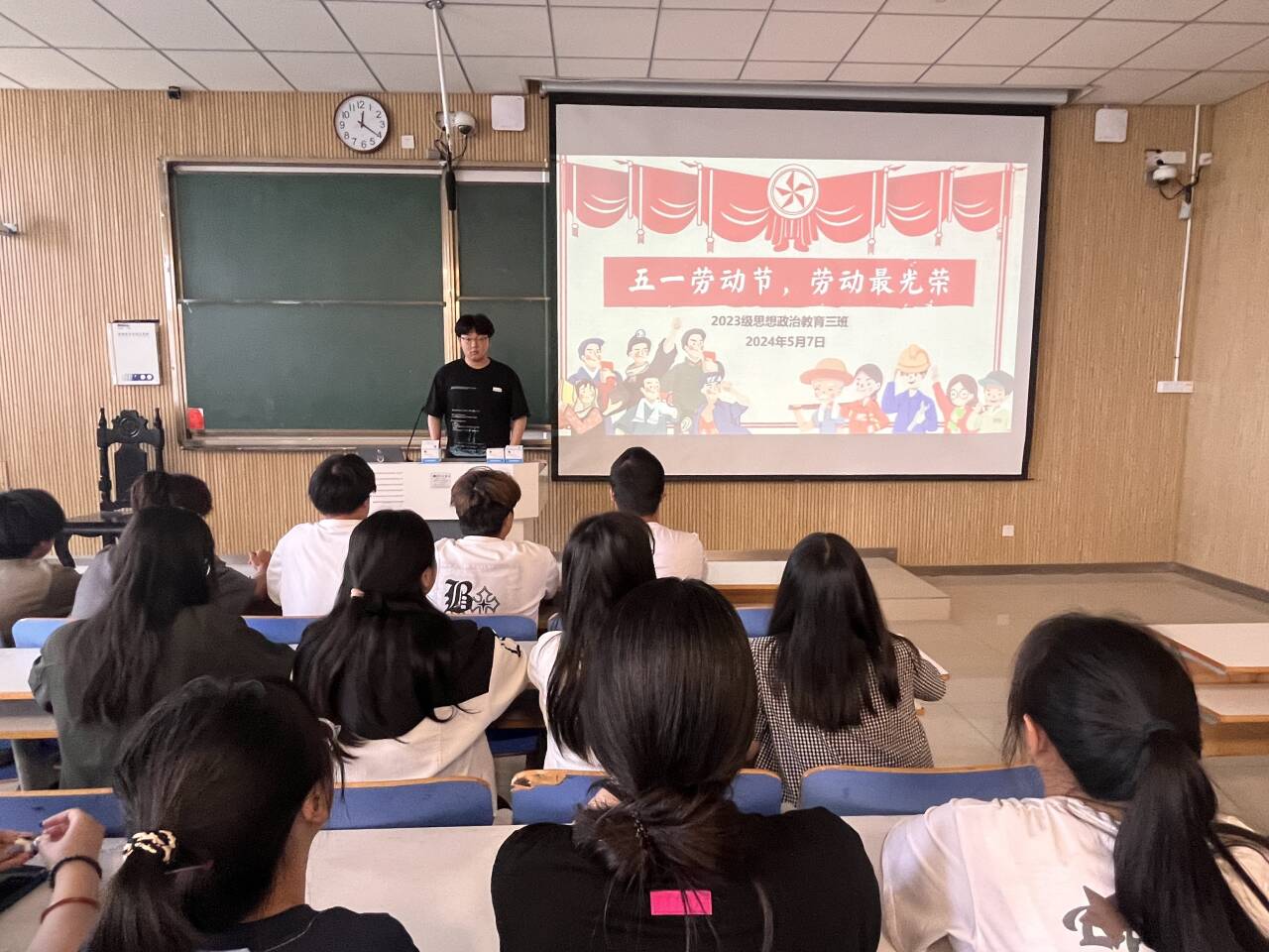 为弘扬劳模精神,发扬劳动传统,5月7日上午,XCSport2023级思想政治教育三班在社科楼515召开“五一劳动节,劳动最光荣”主题班会。公司2023级思想政治教育三班全体同学共同参与本次班会,班会由团支书郝瀚主持。