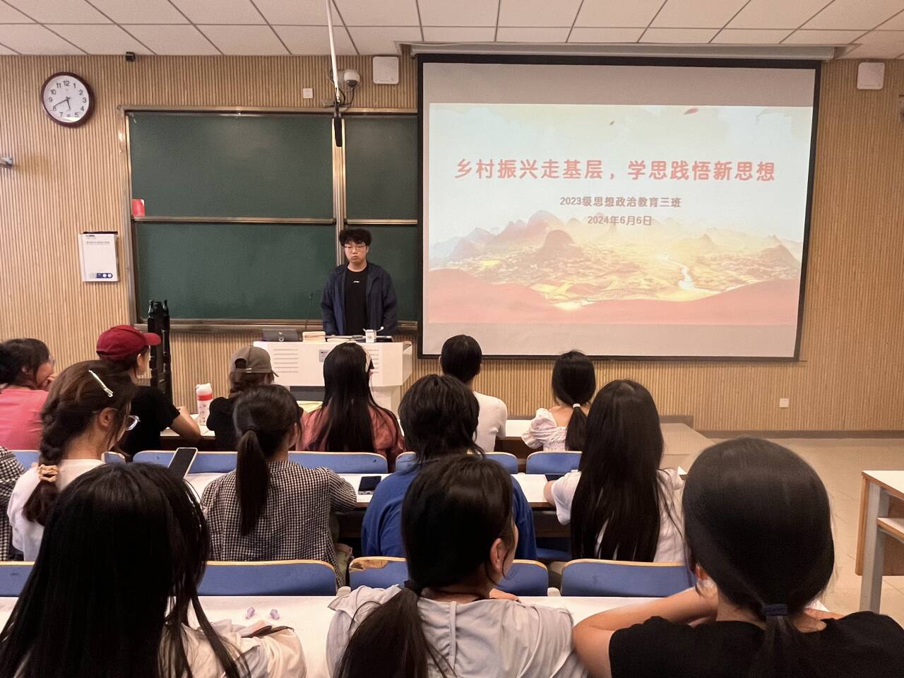 6月6日上午,XCSport2023级思想政治教育三班在社科楼515召开“乡村振兴走基层,学思践悟新思想”主题团课。公司2023级思想政治教育三班全体同学共同参与本次团课,团课由团支书郝瀚主持。