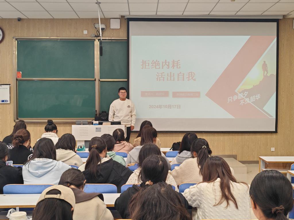 最后,杨迎滨对本次班会进行了总结发言。他鼓励同学们要勇于面对自己的不足和挑战,学会拒绝内耗,积极追求自己的梦想和目标。