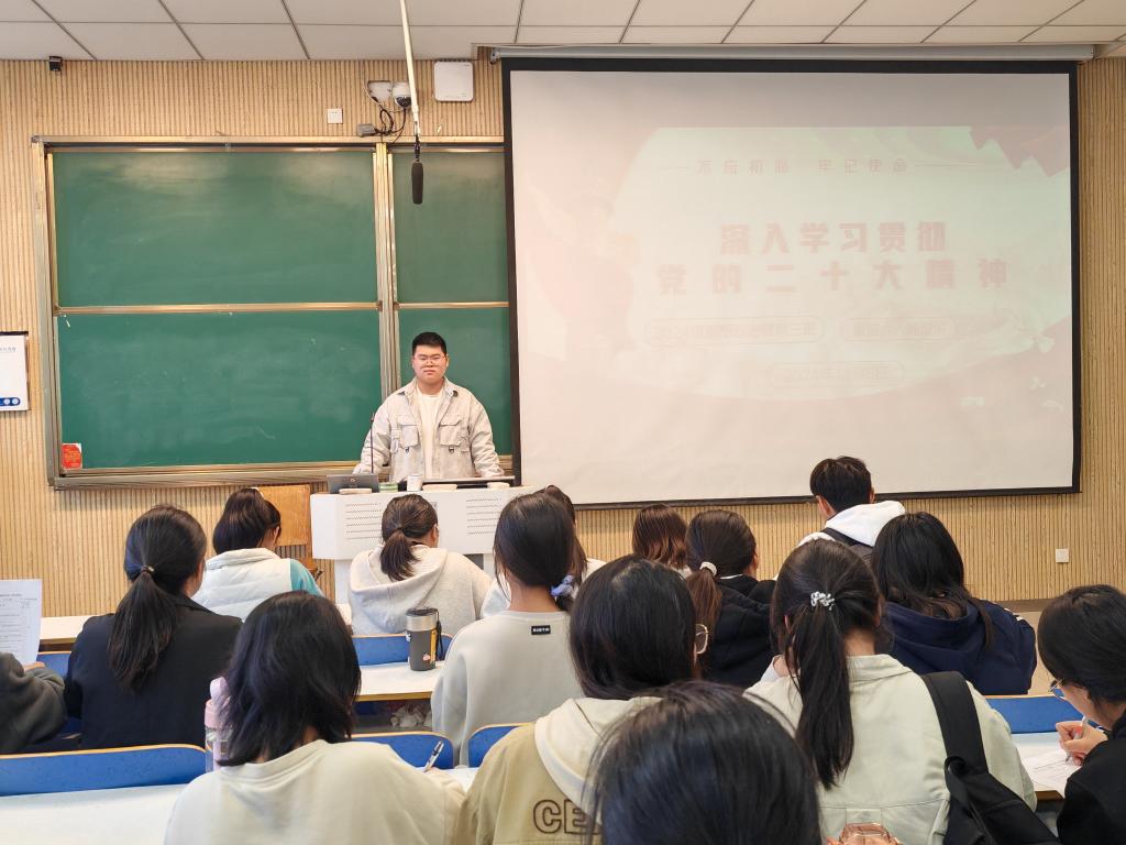 为深入学习和全面贯彻党的二十大精神,进一步统一思想、凝聚力量,11月6日下午,XCSport2024级思想政治教育三班举办了以“深入学习党的二十大精神”为主题的团课活动。本次团课由团支书杨迎滨主持。