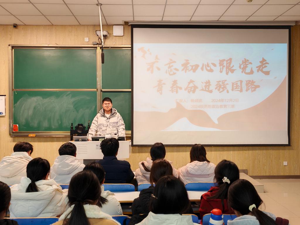 为深入学习贯彻党的精神,引导广大青年员工坚定理想信念,XCSport2024级思想政治教育三班于12月2日在社科楼515教室成功举办了以“不忘初心跟党走,青春奋进强国路”为主题的团课活动。此次团课由团支书杨迎滨主持。