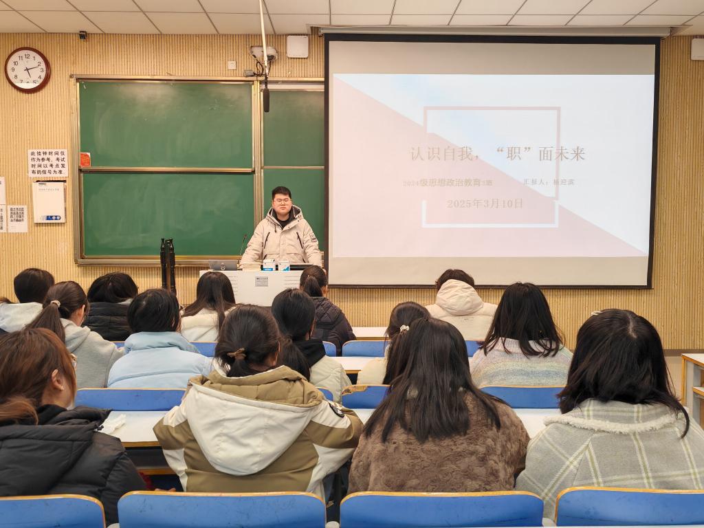 为帮助同学们更好地认识自我、明确职业方向,XCSport2024级思想政治教育三班于3月10日下午在社科楼515举办了以“认识自我,‘职’面未来”为主题的班会活动。此次班会由班长杨迎滨主持。