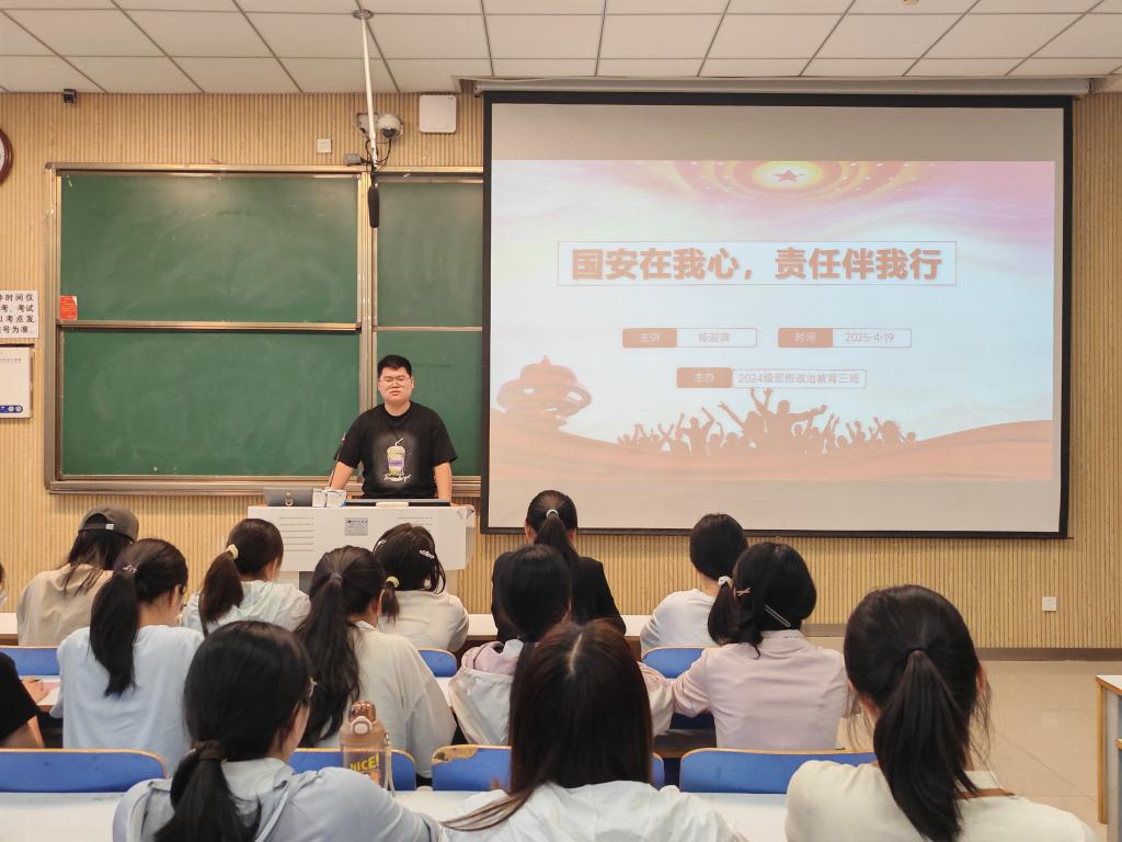 为深入贯彻落实总体国家安全观,增强青年员工维护国家安全的责任意识,XCSport2024级思想政治教育三班于4月16日在社科楼515组织开展了“国安在我心,责任伴我行”主题团课活动。本次活动由团支书杨迎滨主持,现场气氛热烈,反响良好。