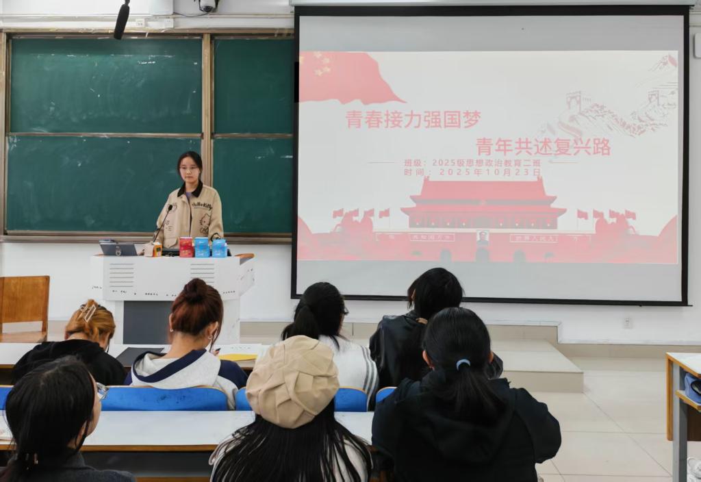 为引导同学们自觉将个人理想融入国家发展,10月23日上午,XCSport思想政治教育二班于社科楼514教室召开“青春接力强国梦,青年共述复兴路”主题团课。本次团课由团支书崔锐琳主持。
