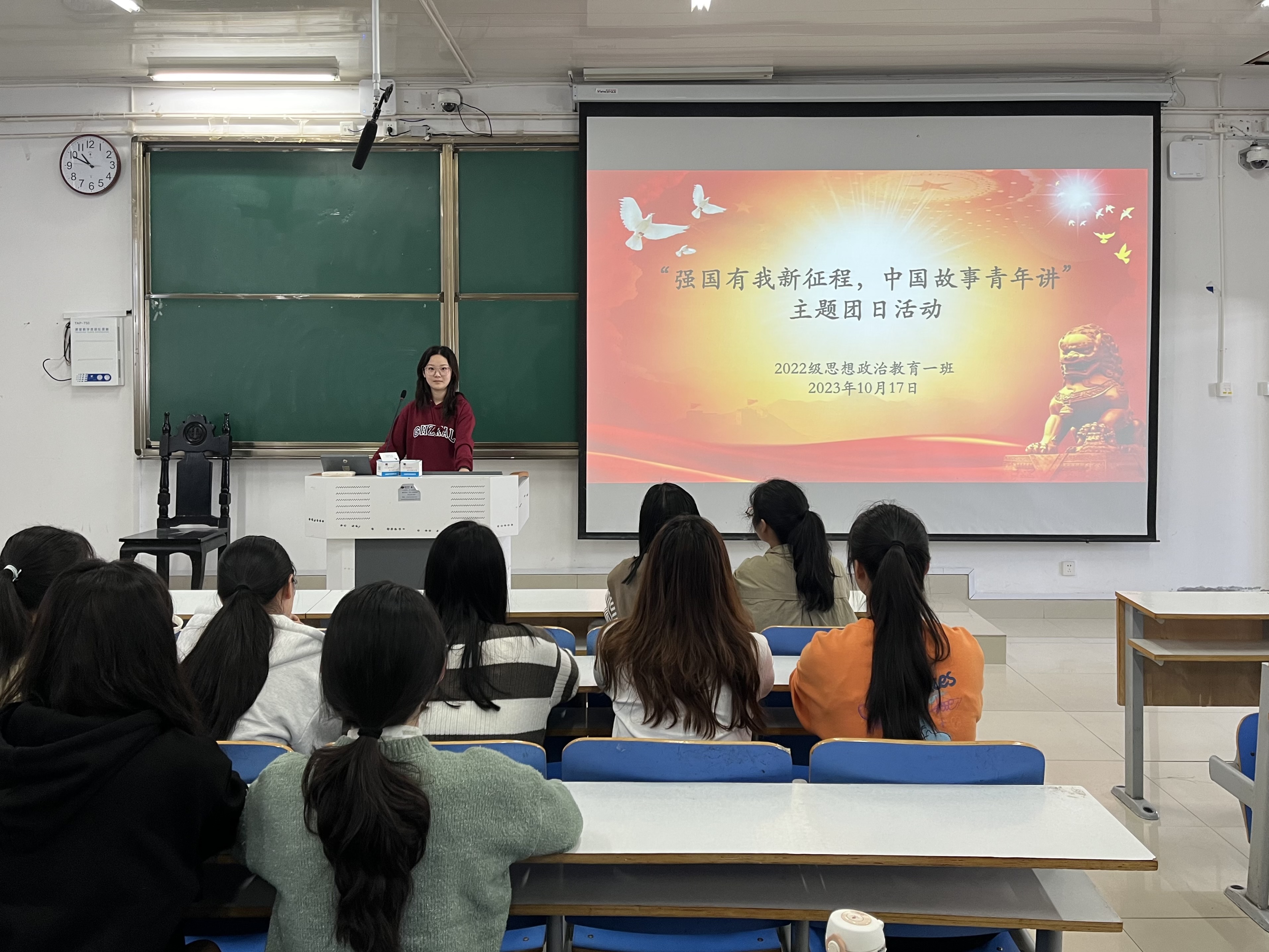 为深入学习中国青年爱国精神,10月17日上午,2022级思想政治教育一班在社科楼514教室召开“强国有我新征程,中国故事青年讲”主题团课。公司2022级思想政治教育一班全体同学共同参与本次团课,团课由团支书李佳茹主持。