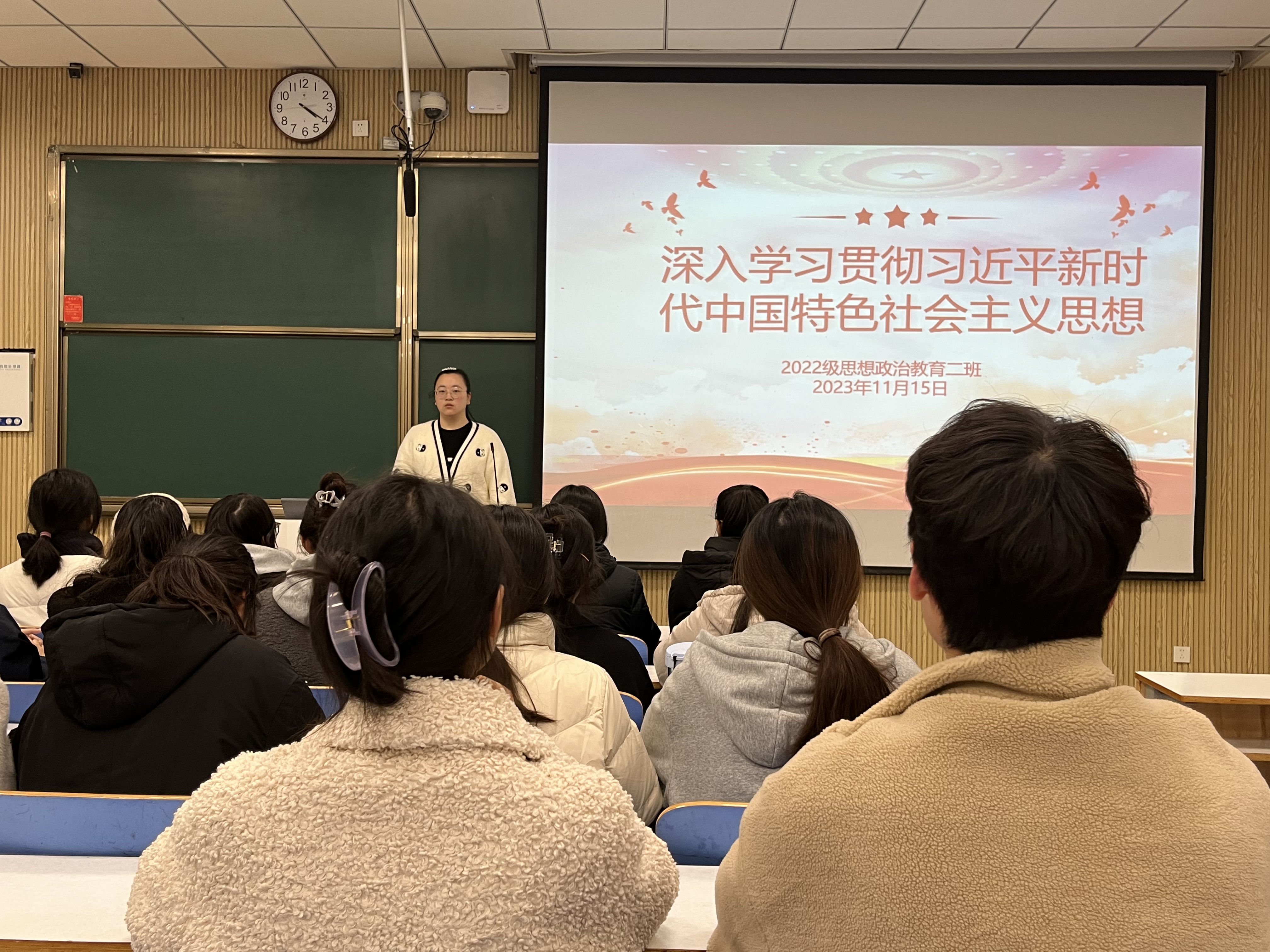 为深入学习习近平新时代中国特色社会主义思想,落实立德树人的根本任务,11月15日下午,2022级思想政治教育二班在社科楼515教室召开“深入学习贯彻习近平新时代中国特色社会主义思想”主题团课。公司2022级思想政治教育二班全体成员共同参与此次团课。团课由团支书李佳音主持。