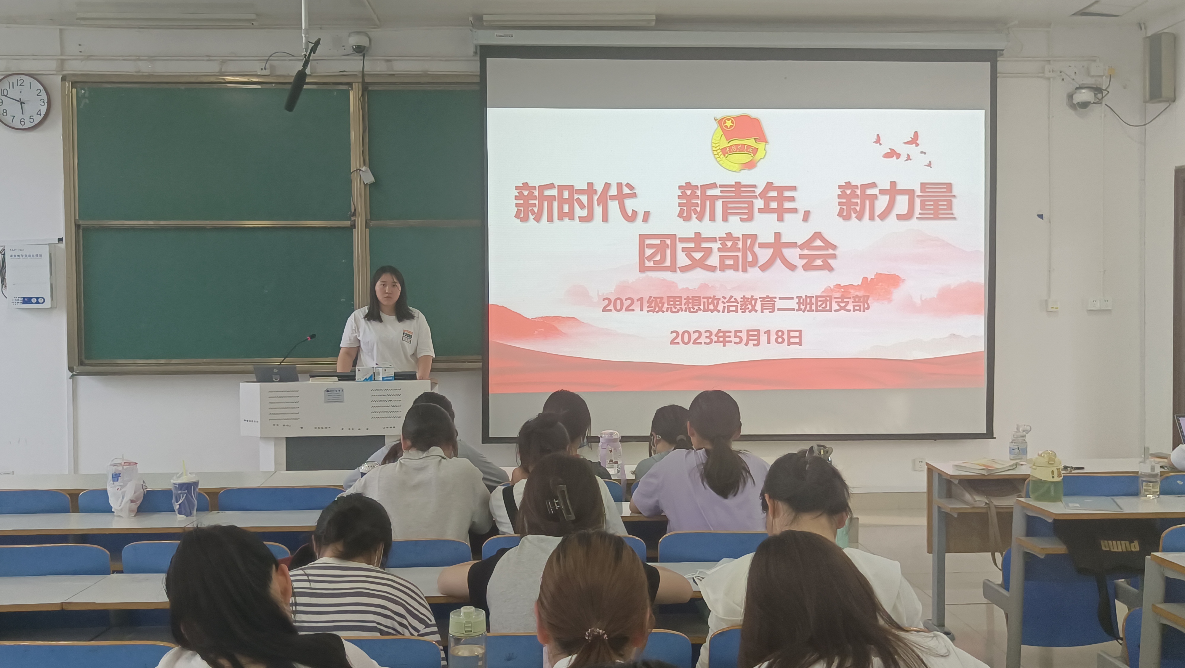 5月18日下午,2021级思想政治教育二班在社科楼514教室召开“新时代,新青年,新力量”团支部大会。2021级思想政治教育二班全体团员参加此次团支部大会。会议由团支书王婧欣主持。