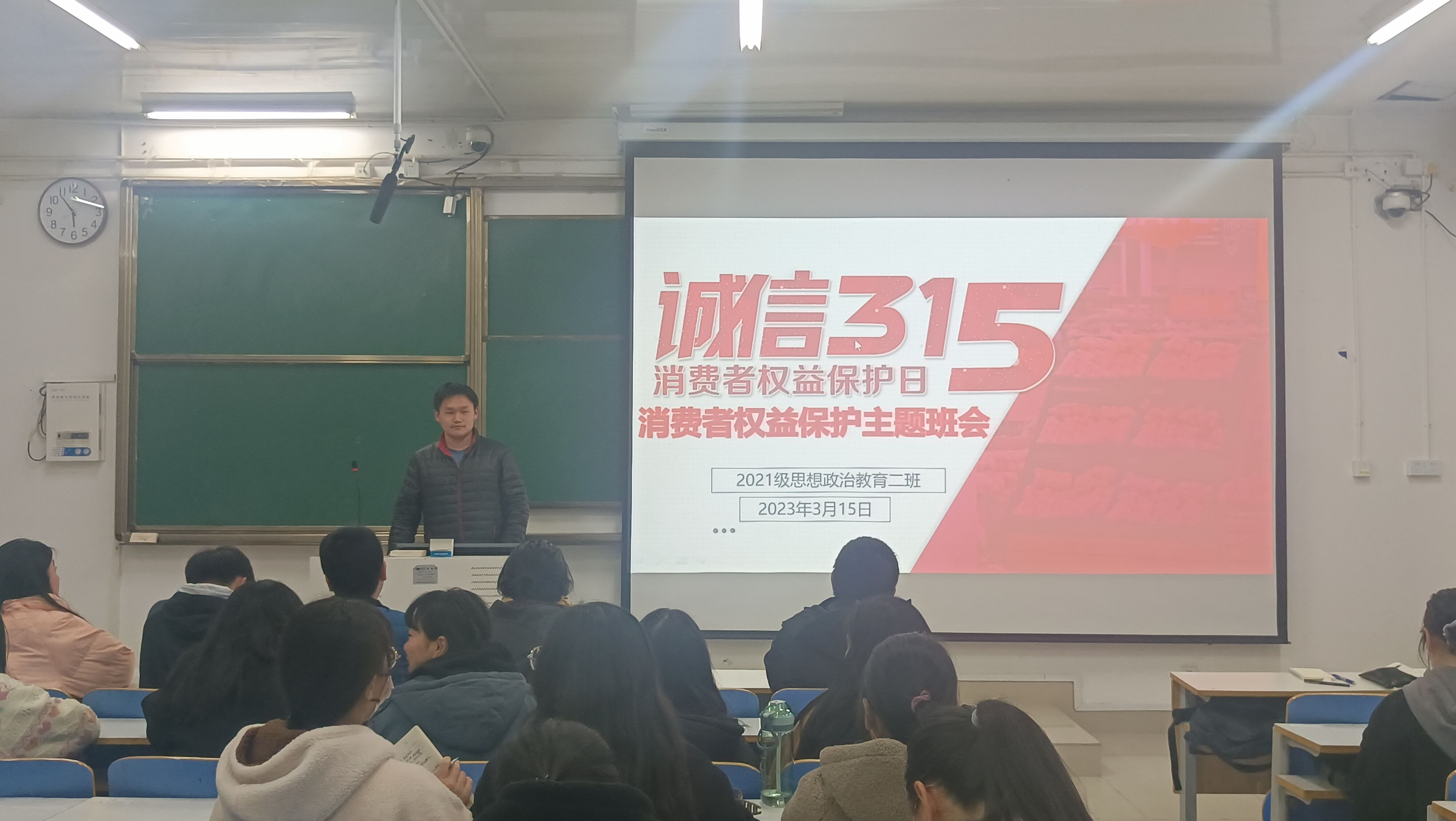 3月15日下午,2021级思想政治教育二班在社科楼514教室召开消费者权益保护主题班会。2021级思想政治教育二班全体同学参加此次主题班会。班会由副班长任振豪主持。