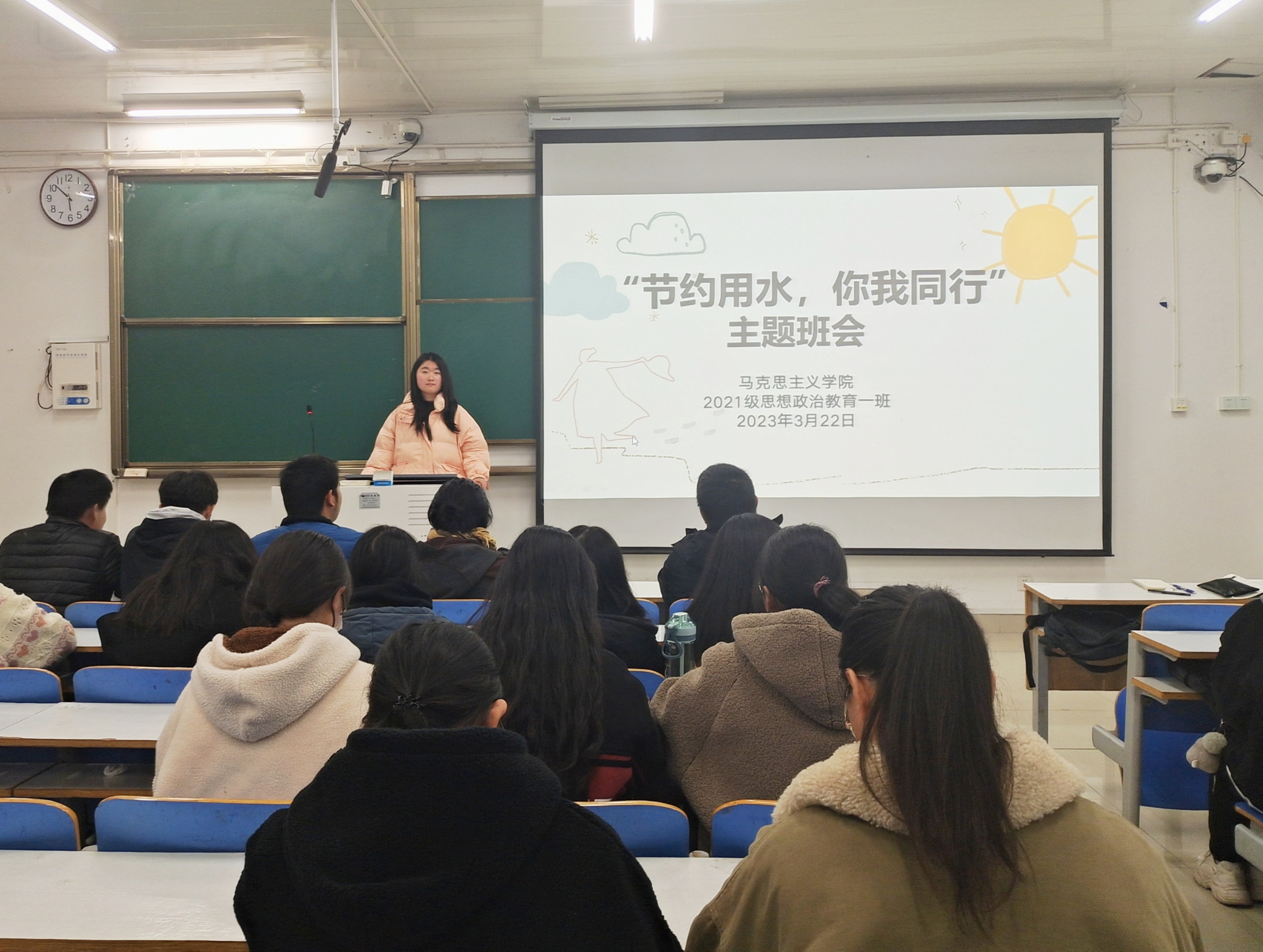 为培育员工养成节约用水的良好习惯,树立生态环境保护意识。3月22日下午,2021级思想政治教育一班在社科楼514教室召开“节约用水,你我同行”主题班会。2021级思想政治教育一班全体成员共同参与本次班会。班会由副班长雷敏主持。