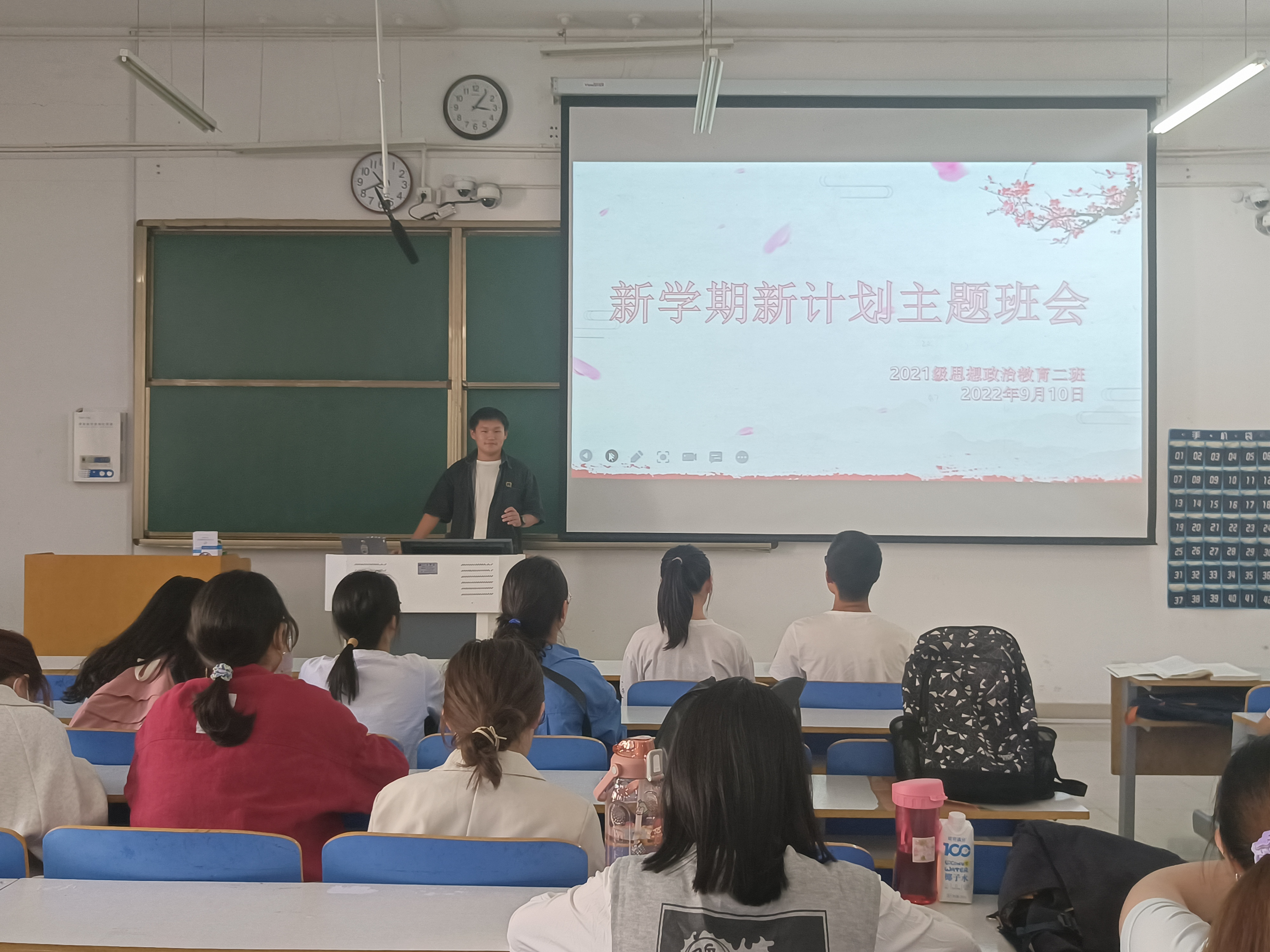 9月10日上午,2021级思想政治教育二班在社科楼514教室召开新学期新计划主题班会。2021级思想政治教育二班全体成员参加此次班会。班会由副班长任振豪主持。