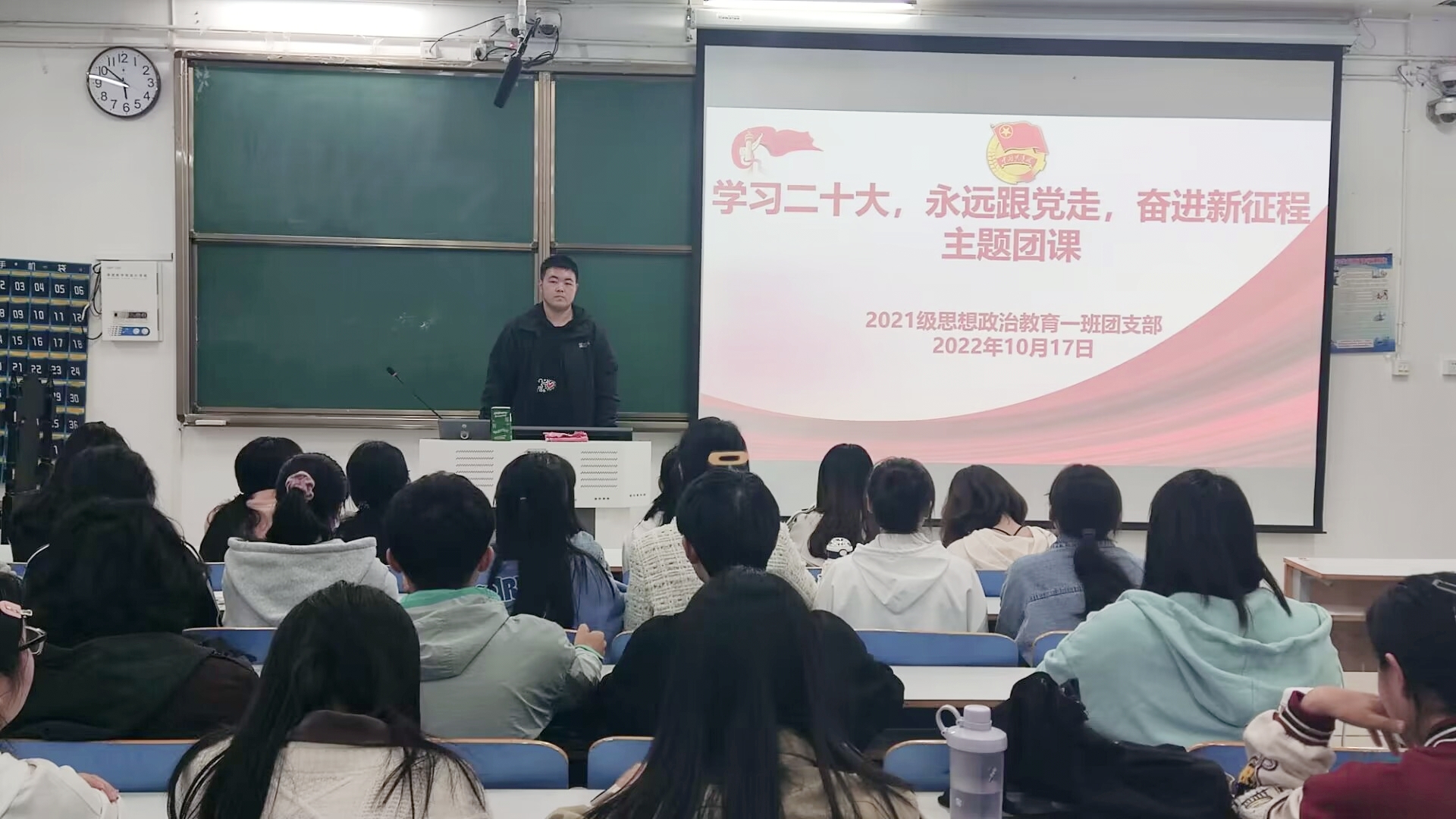10月17日下午,2021级思想政治教育一班在社科楼514教室召开“学习二十大,永远跟党走,奋进新征程”主题团课。2021级思想政治教育一班全体团员共同参与本次团课。团课由团支书戴翰林主持。
