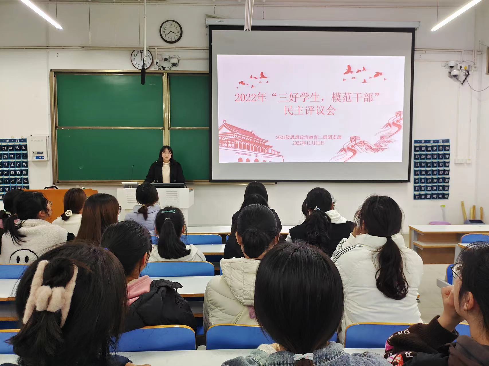 11月11日下午,2021级思想政治教育二班在社科楼514教室召开2022年“三好员工,模范干部”民主评议会。2021级思想政治教育二班全体成员共同参加此次民主评议会。评议会由团支书王婧欣主持。
