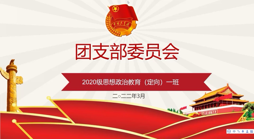 3月24日晚上,2020级思想政治教育定向一班顺利举办了团支部大会。会议通过线上的形式举办,2020级思想政治教育定向一班全体员工聆听了此次会议。