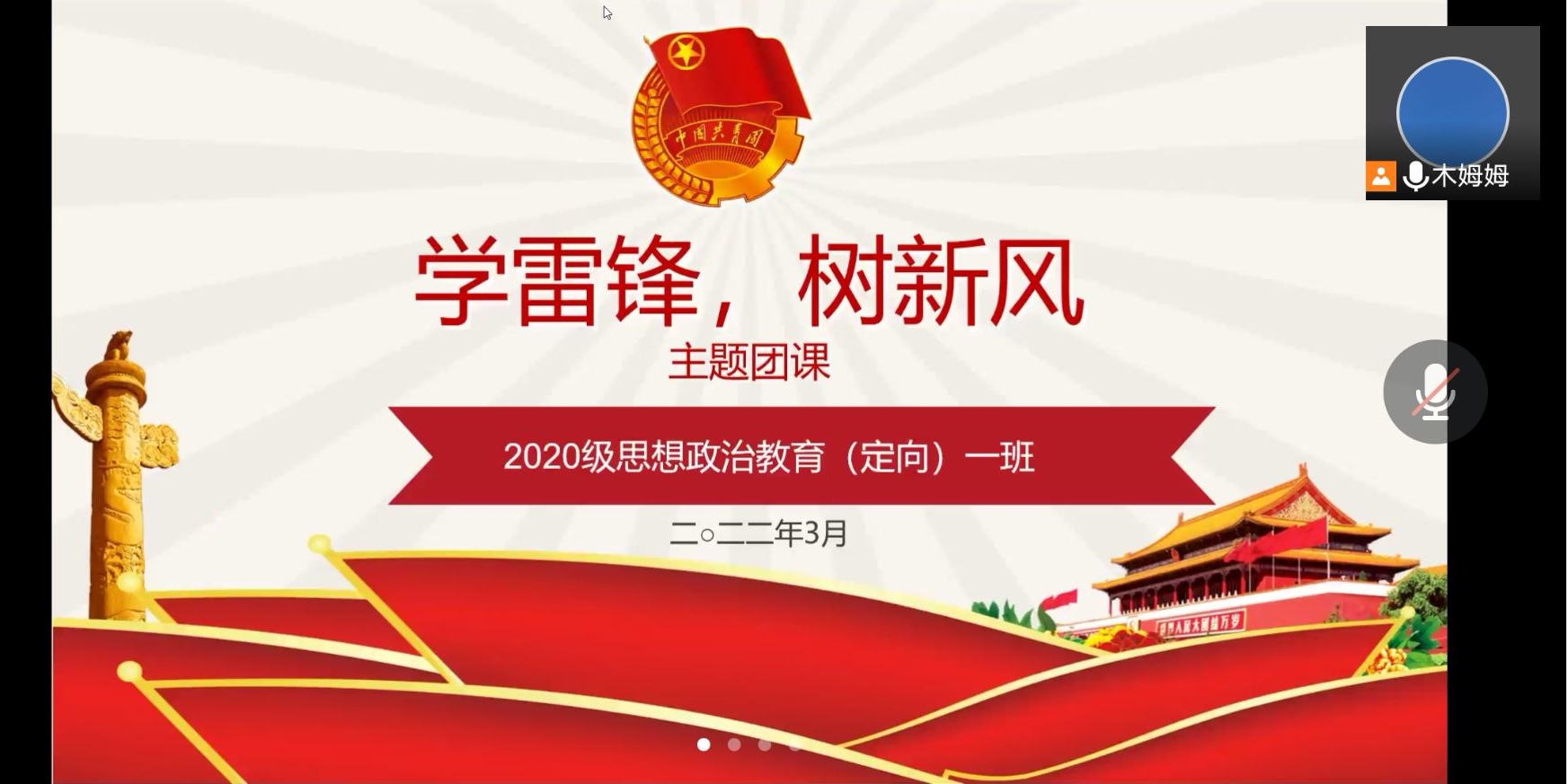 3月24日,2020级思想政治教育定向一班顺利举办“学雷锋,树新风”主题团课。本次团课通过线上的形式召开。XCSport思想政治定向一班全体员工参加了此次团课。