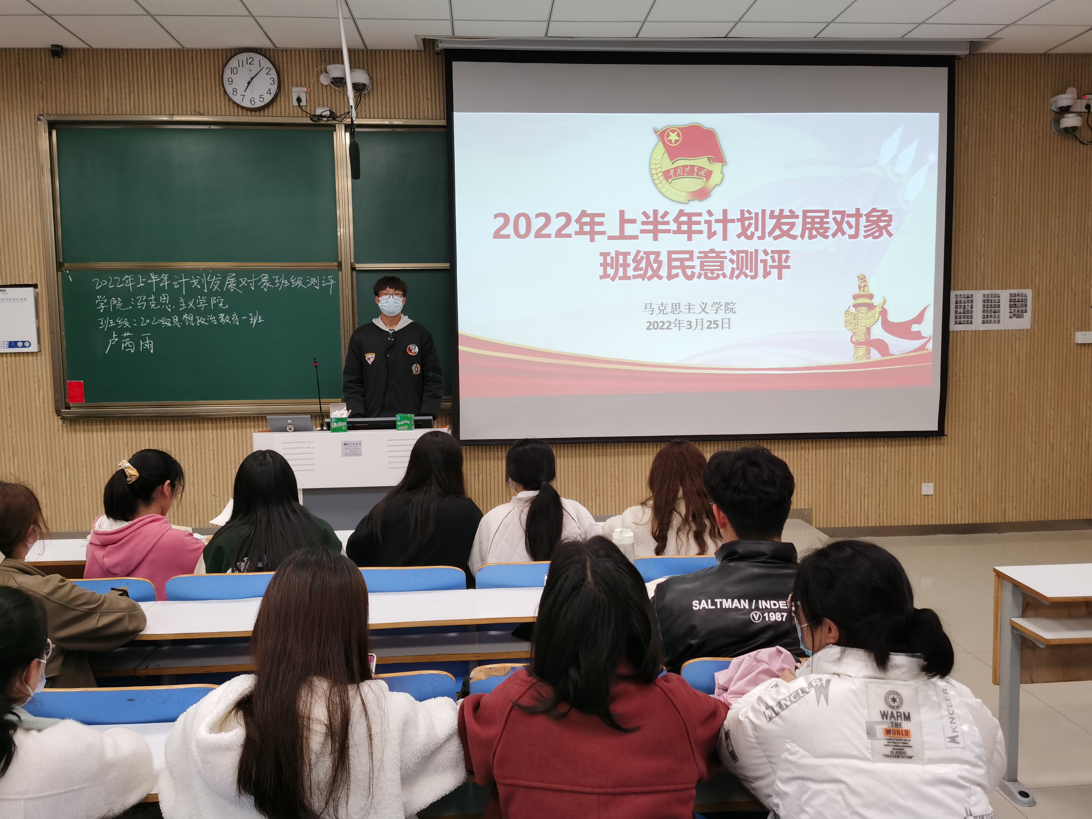 3月25日晚上,2020级思想政治教育一班在社科楼515教室召开2021年上半年计划发展对象班级民意测评会议。2020级思想政治教育一班全体同学参加了本次会议,会议由团支部副书记白帅豪主持。