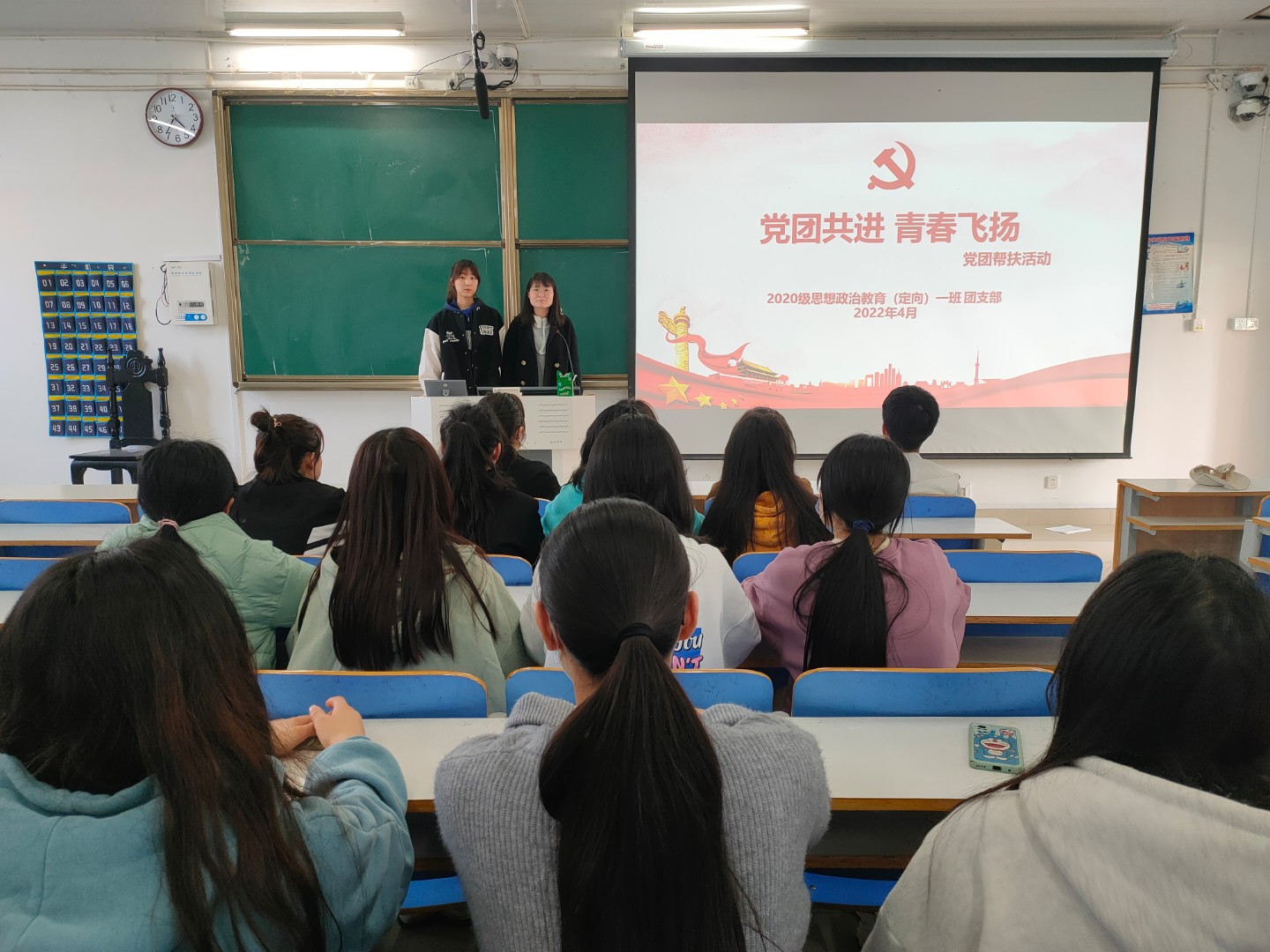 4月1日下午,2020级思想政治教育定向一班党团帮扶会在社科楼514教室举行。此次会议邀请了2018级的贾雨晴和韩一嘉两位员工党员,请她们为同学们提出的学习和日常生活中的问题进行答疑解惑。
