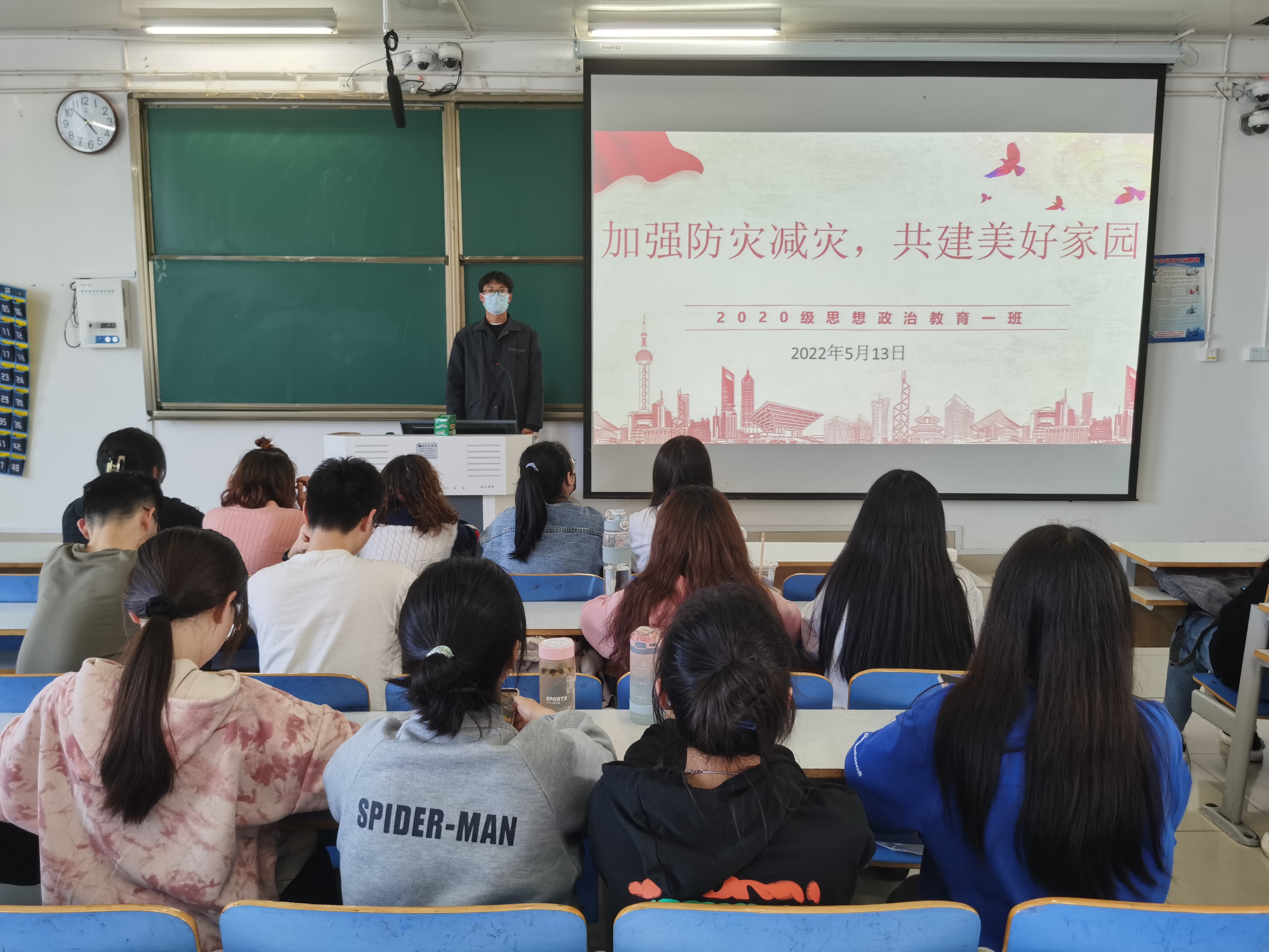 5月13日上午,2020级思想政治教育一班在社科楼514召开了“加强防灾减灾,共建美好家园”的主题班会。2020级思想政治教育一班全体同学共同参加本次班会,班会由副班长白帅豪主持。