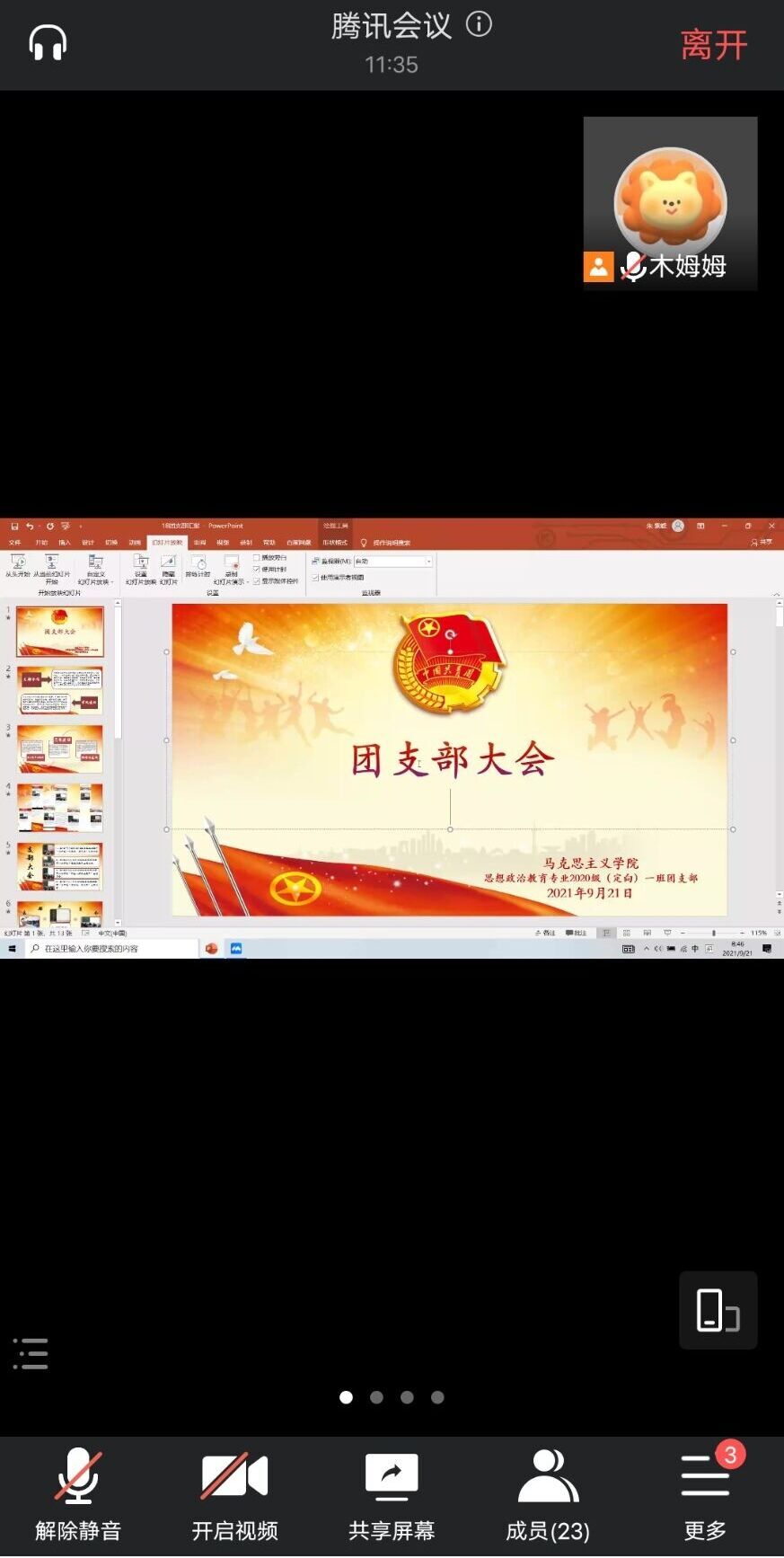 9月21日上午,2020级思想政治教育(定向)一班通过腾讯会议在线上顺利举行了团支部大会。2020级思想政治教育(定向)一班全体员工聆听了此次会议。