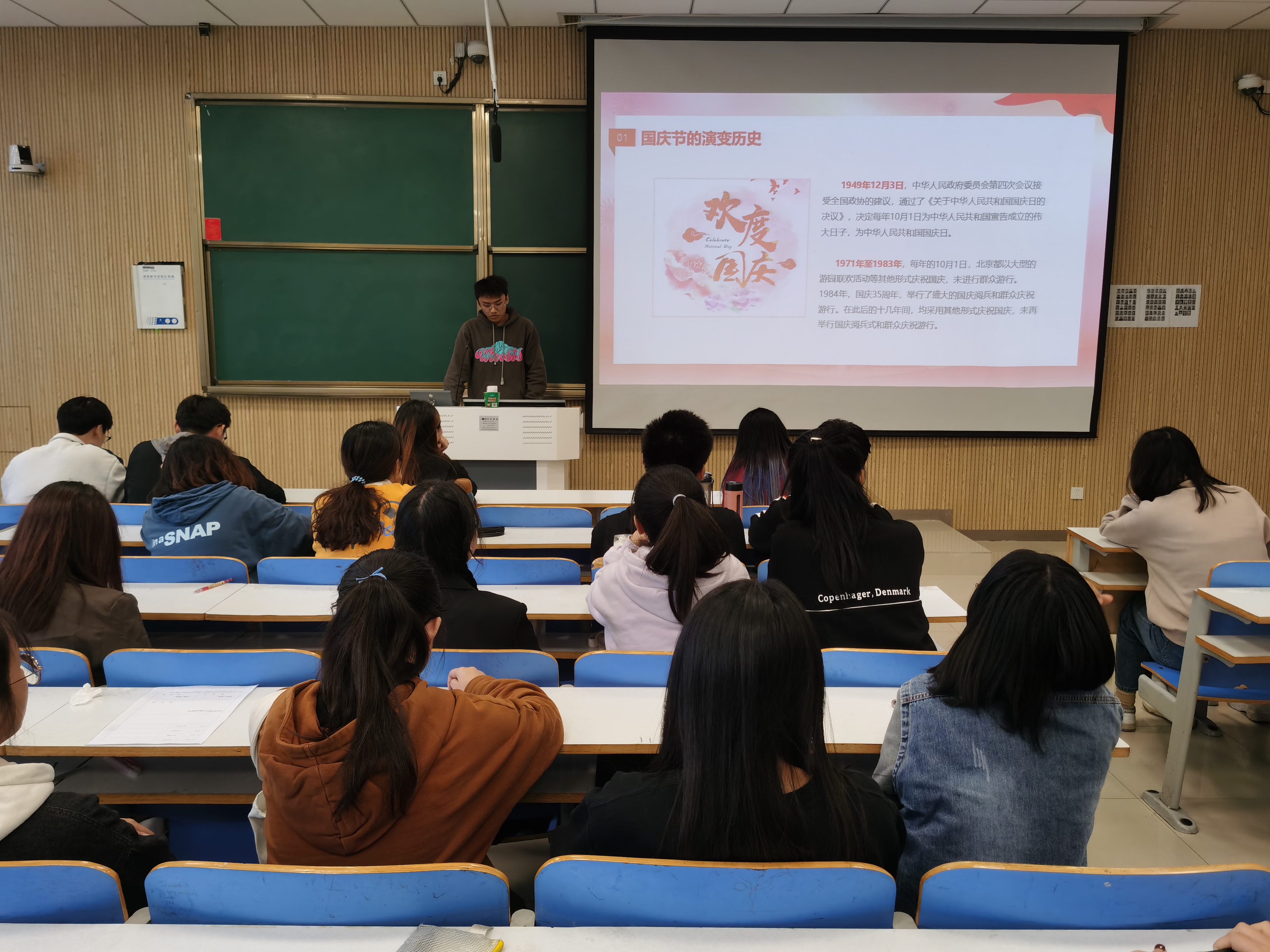 10月21日下午,2020级思想政治教育一班、(定向)一班“欢度国庆”主题团课在社科楼515教室顺利开展。2020级思想政治教育一班、(定向)一班全体团员参与本次团课。团课由张家聪主持。