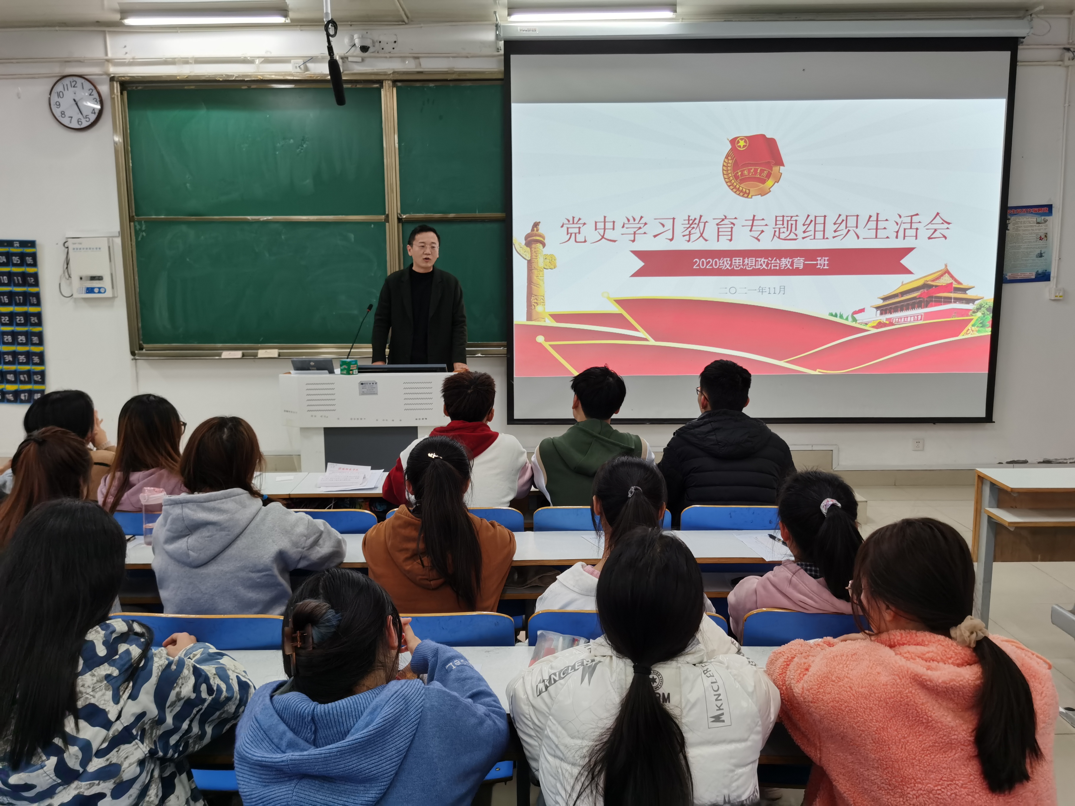 11月14日下午,2020级思想政治教育一班在社科楼514教室召开党史学习教育专题组织生活会。辅导员曹栋及2020级思想政治教育一班全体团员参加了本次会议,会议由团支书卢茜雨主持。