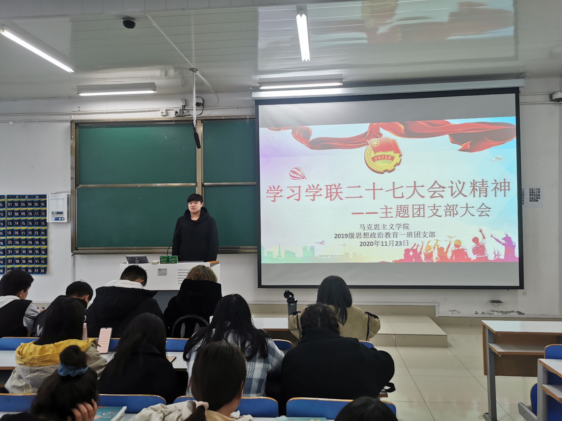 11月23日下午,2019级思想政治教育一班第一团支部在社科楼515教室召开“学习学联二十七大会议精神”主题团支部大会。2019级思想政治教育一班全体成员参加本次会议,会议由团支书贾子漪主持。