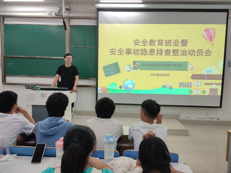 6月9日下午,2019级思想政治教育一班在社科楼515教室召开“安全教育班会暨安全事故隐患排查整治动员大会”。辅导员曹栋以及2019级思想政治教育一班全体成员参加本次班会。会议由曹栋主持。