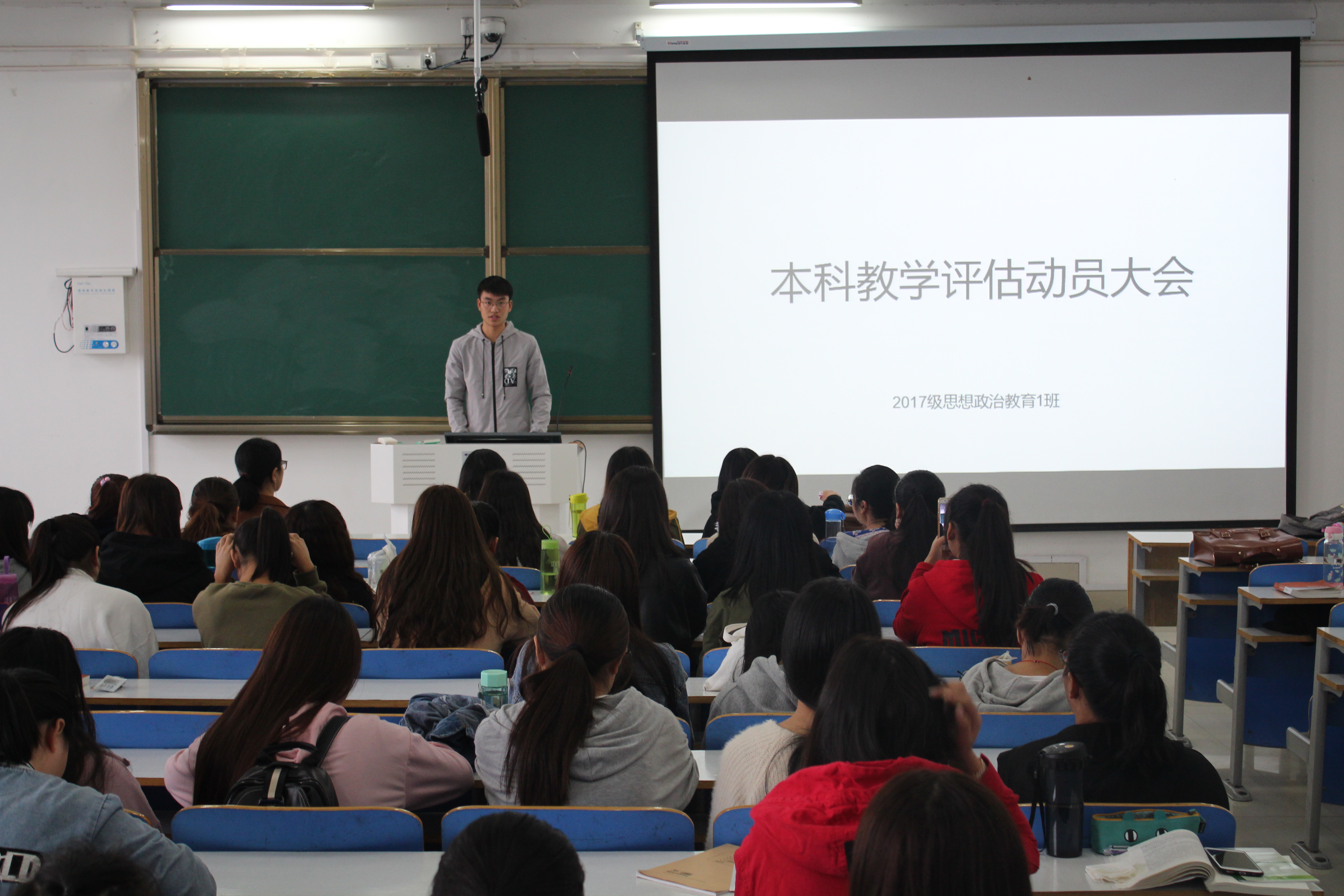 为迎接公司本科教学工作审核评估工作,增强员工的在校自觉性,10月19日上午,2017级思想政治教育一班在社科楼514教室召开本科教学评估动员大会主题班会。此次班会由2017级思想政治教育一班员工参与,班长邹创主持。