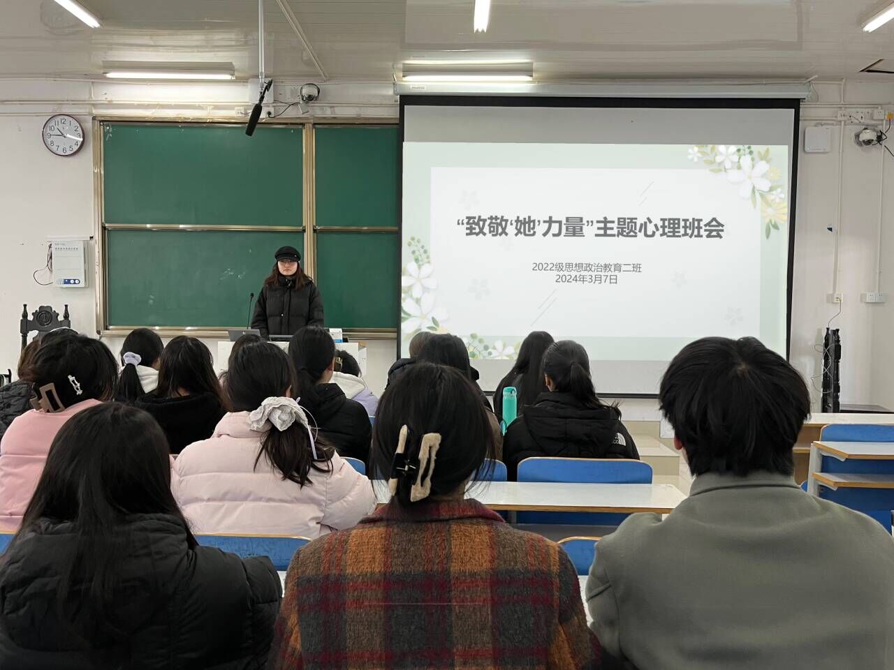 3月7日上午,XCSport2022级思想政治教育二班在社科楼514教室召开“致敬‘她’力量”主题班会。公司2022级思想政治教育二班全体成员共同参与此次班会。会议由心理委员张嘉芮主持。