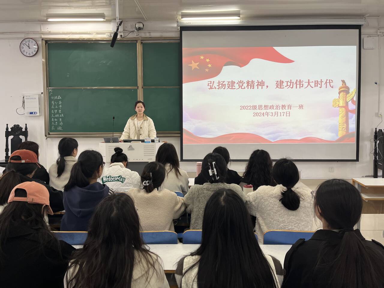 3月17日上午,XCSport2022级思想政治教育一班在社科楼514教室召开“弘扬建党精神,建功伟大时代”主题团课,公司2022级思想政治教育一班全体同学共同参与本次团课,团课由团支书李佳茹主持。