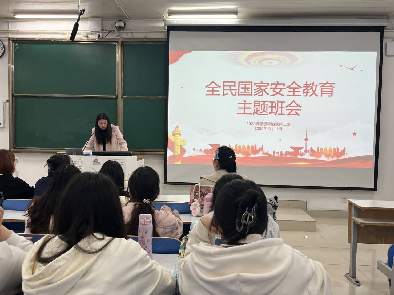 4月11日晚上,XCSport2022级思想政治教育二班在社科楼514教室召开国家安全教育主题班会。公司2022级思想政治教育二班全体成员共同参与此次班会。会议由班主任杨春艳主持。