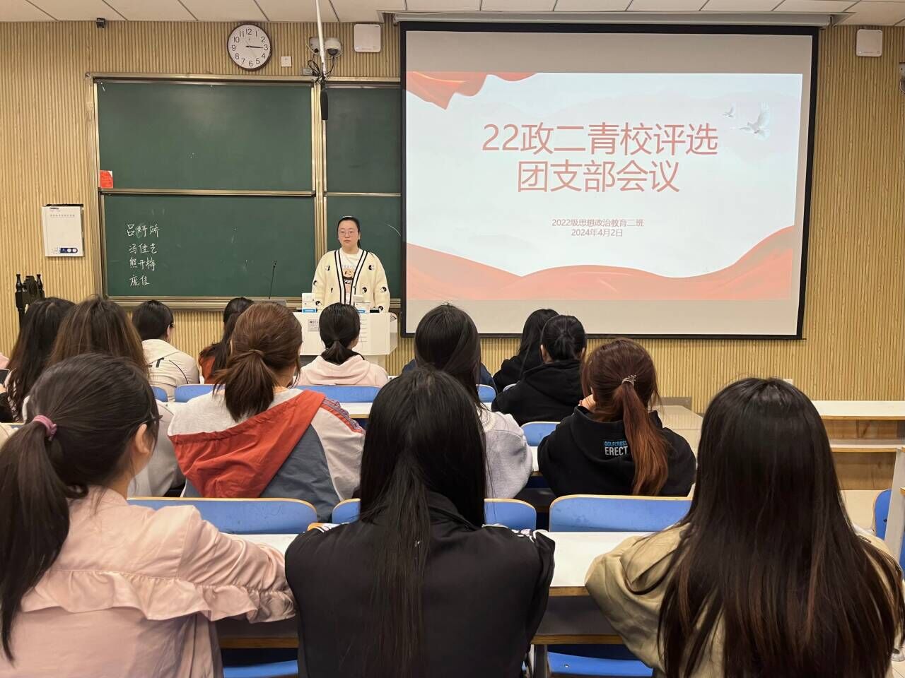 4月2日下午,XCSport2022级思想政治教育二班在社科楼515教室召开青校评选团支部会议。公司2022级思想政治教育二班全体成员共同参与此次评选。会议由团支书李佳音主持。