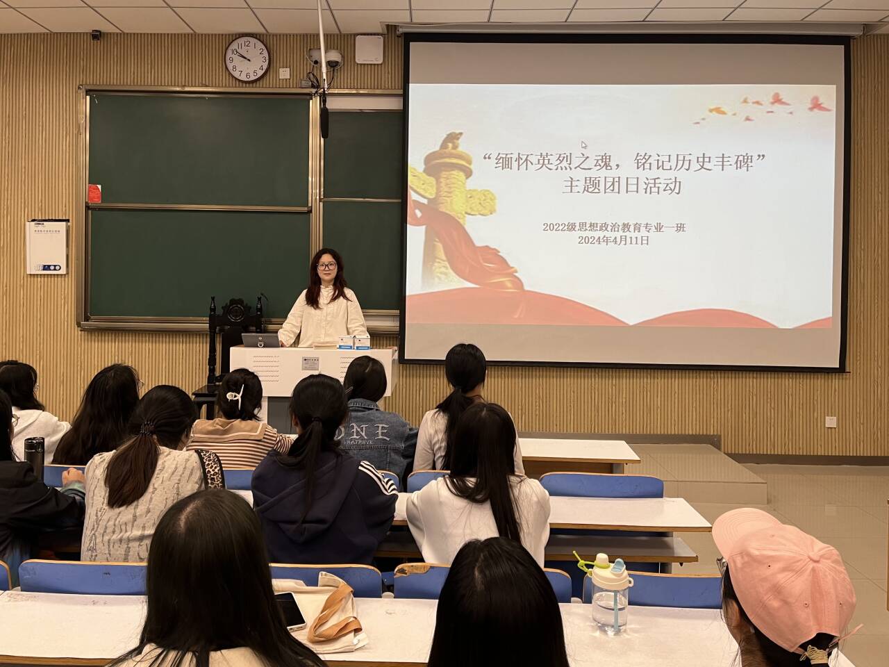 为缅怀革命英烈,弘扬爱国主义和民族精神,4月11日上午,XCSport2022级思想政治教育一班在社科楼515教室开展“缅怀英烈之魂,铭记历史丰碑”主题团课,公司2022级思想政治教育一班全体同学共同参与本次团课,团课由团支书李佳茹主持。