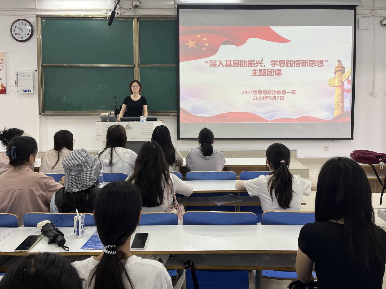 为进一步加强同学们的思想教育,6月7日上午,XCSport2022级思想政治教育一班在社科楼514教室开展“深入基层助振兴,学思践悟新思想”主题团课,公司2022级思想政治教育一班全体同学共同参与本次团课,团课由团支书李佳茹主持。