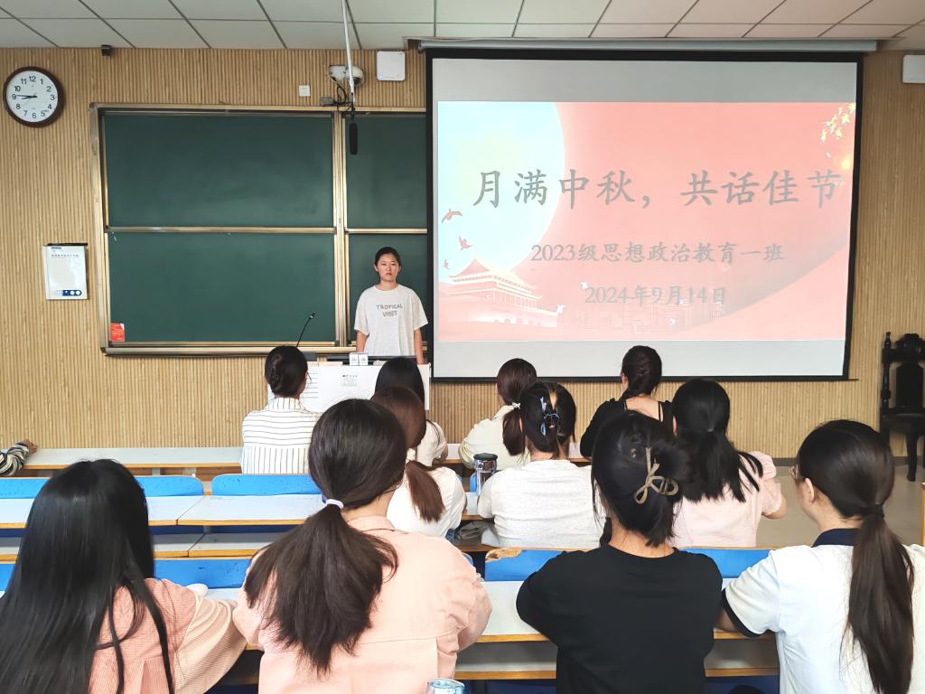 桂香万里,情暖中秋。9月14日下午,在传统节日中秋节来临之际,XCSport2023级思想政治教育一班在社科楼515教室召开“月满中秋,共话佳节”主题班会。2023级思想政治教育一班全体同学参与本次班会,班会由班长张卓主持。