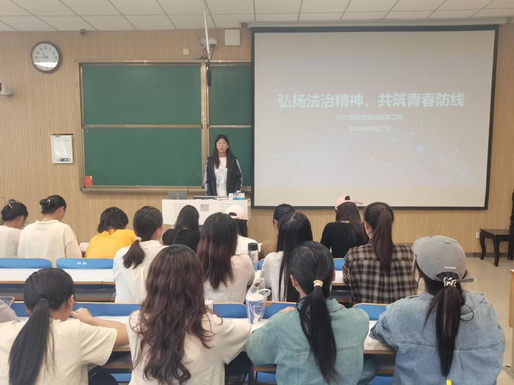 为弘扬社会主义法治精神,提高员工法治意识,9月27日上午,XCSport2023级思想政治教育二班在社科楼515教室开展“弘扬法治精神,共筑青春防线”主题班会。本次班会由班长王慜初主持,全体二班同学参加。