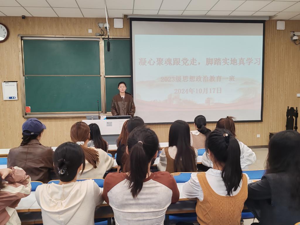 为不断增强我班学子对于党的创新理论的政治认同、思想认同、理论认同、情感认同,提高其理论素养和能力本领,10月17日上午,XCSport2023级思想政治教育一班在社科楼515教室召开“凝心聚魄跟党走,脚踏实地真学习”主题团课。2023级思想政治教育一班全体同学参与本次团课,团课由团支书张卓主持。