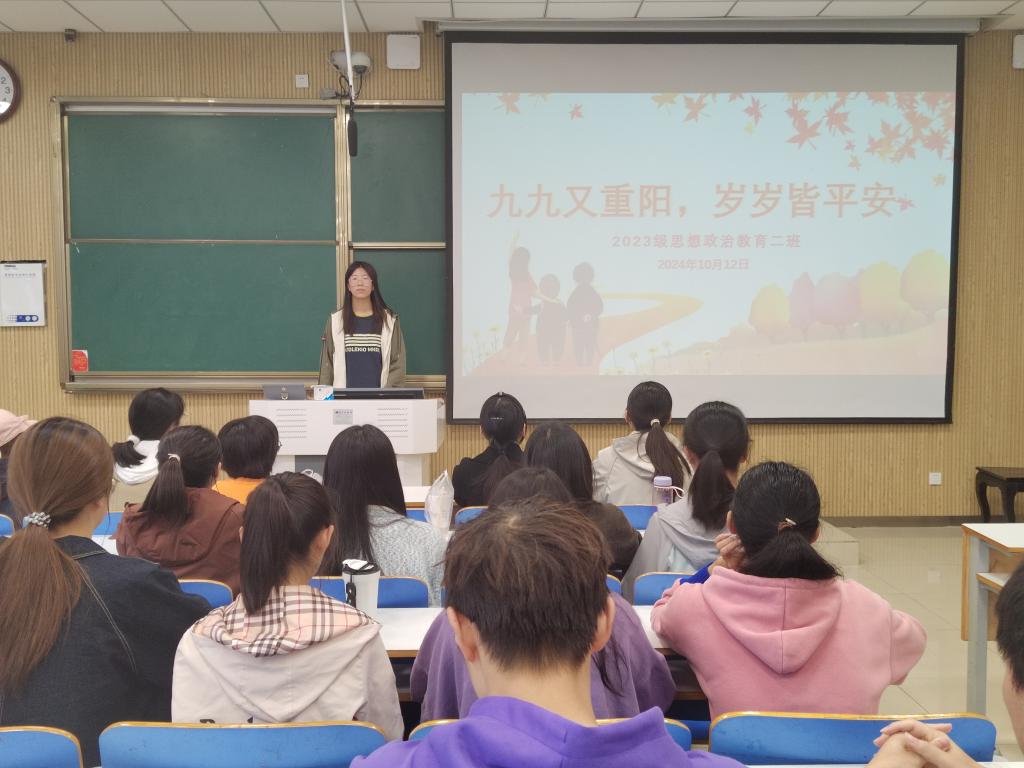 为在班级内弘扬中华优秀传统文化,发扬中华民族传统美德,10月12日下午,XCSport2023级思想政治教育二班在社科楼515教室召开“九九又重阳,岁岁皆平安”主题班会。本次班会由班长王慜初主持,全体二班同学参加。